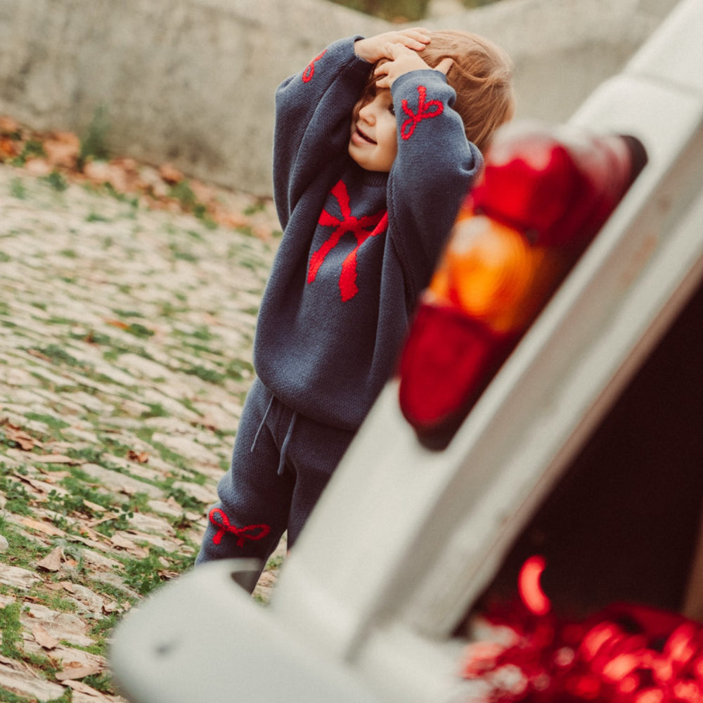 Upplev den ultimata komforten med That's Mine Key Blue Norma Byxor. Dessa charmiga stickade byxor är designade med en söt rosett vid knäna och har en elastisk midja samt justerbar slips för optimal passform. Den mjuka materialet och de genomtänkta detaljerna gör dem perfekta för lek och avkoppling. Vårdbara och slitstarka, dessa byxor är ett utmärkt val för din lilla skatt.