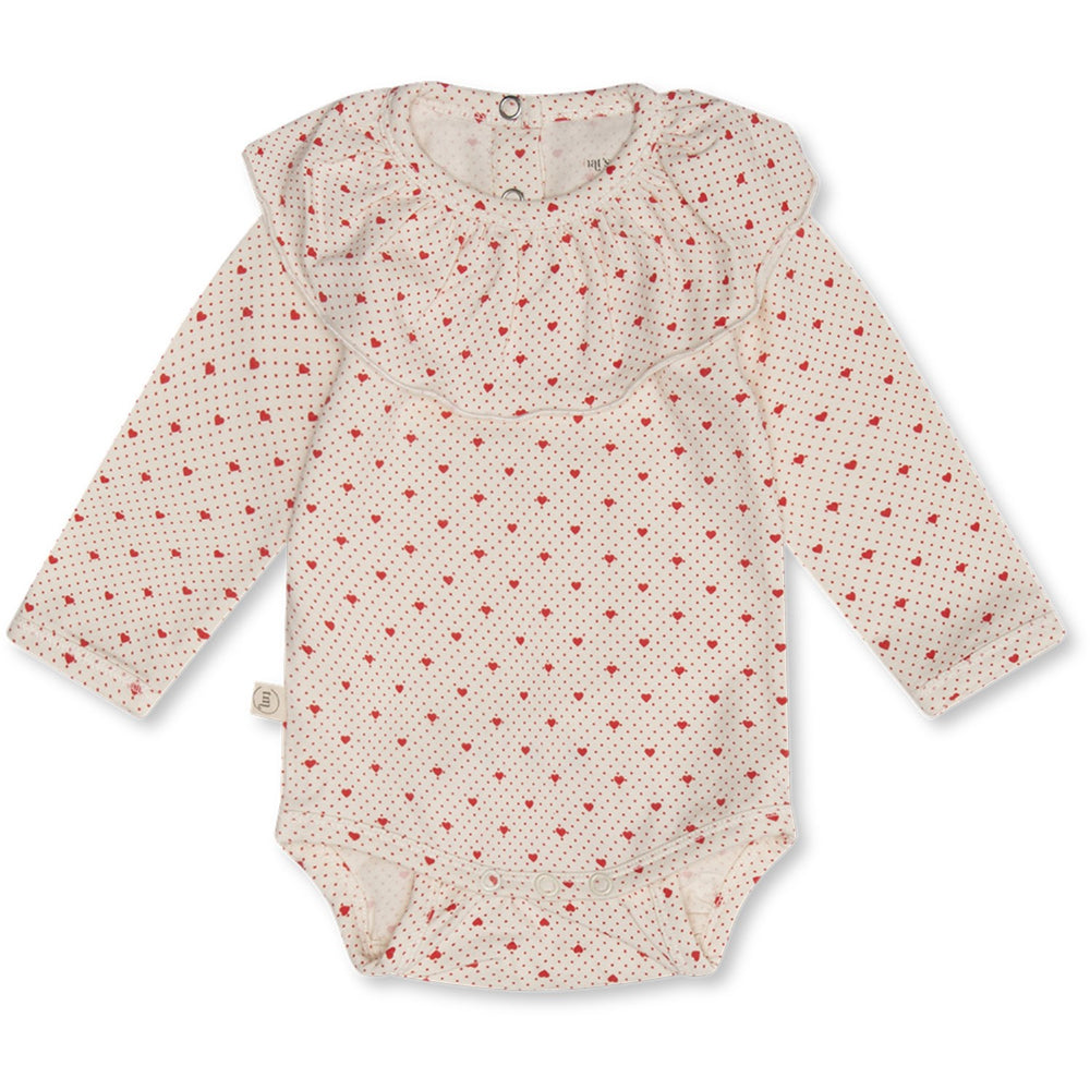 Upptäck den charmiga "Lots of Love Red Ella" bodystocking från That's Mine, perfekt för din lilla älskling. Denna fina och mjuka bodysuit är tillverkad i den mjukaste bomullen blandat med modal, vilket garanterar både komfort och hållbarhet. Den är designad med en elegant krage som tillför en klassisk touch, och dess rika röda färg kompletteras av vackra tryck som gör varje bodysuit unik.