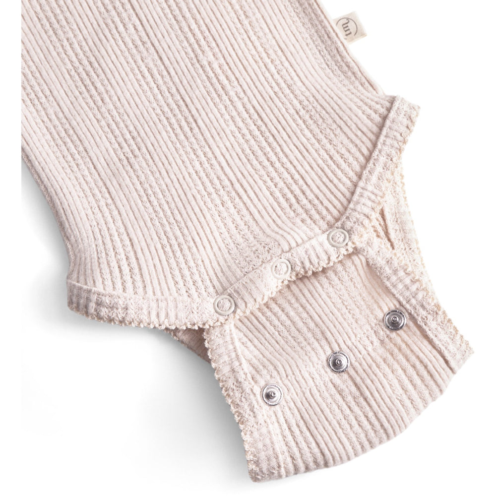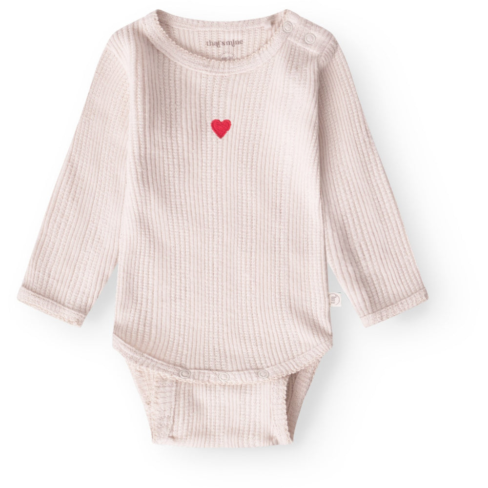 Låt ditt barn uppleva komfort och stil med That's Mine Perfectly Pale Signe Bodystocking. Denna mjuka bodystocking är gjord av ekologisk bomull och har en utsökt borstad pointelle-design prydd med små broderade hjärtan framtill. Med två rader av justerbara metallknappar kan bodystockingens längd anpassas efter barnets tillväxt, vilket säkerställer både passform och hållbarhet. Perfekt för en mysig hemmakväll eller som ett bekvämt baslager under kallare dagar.