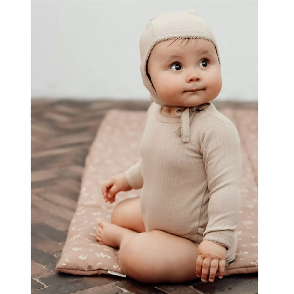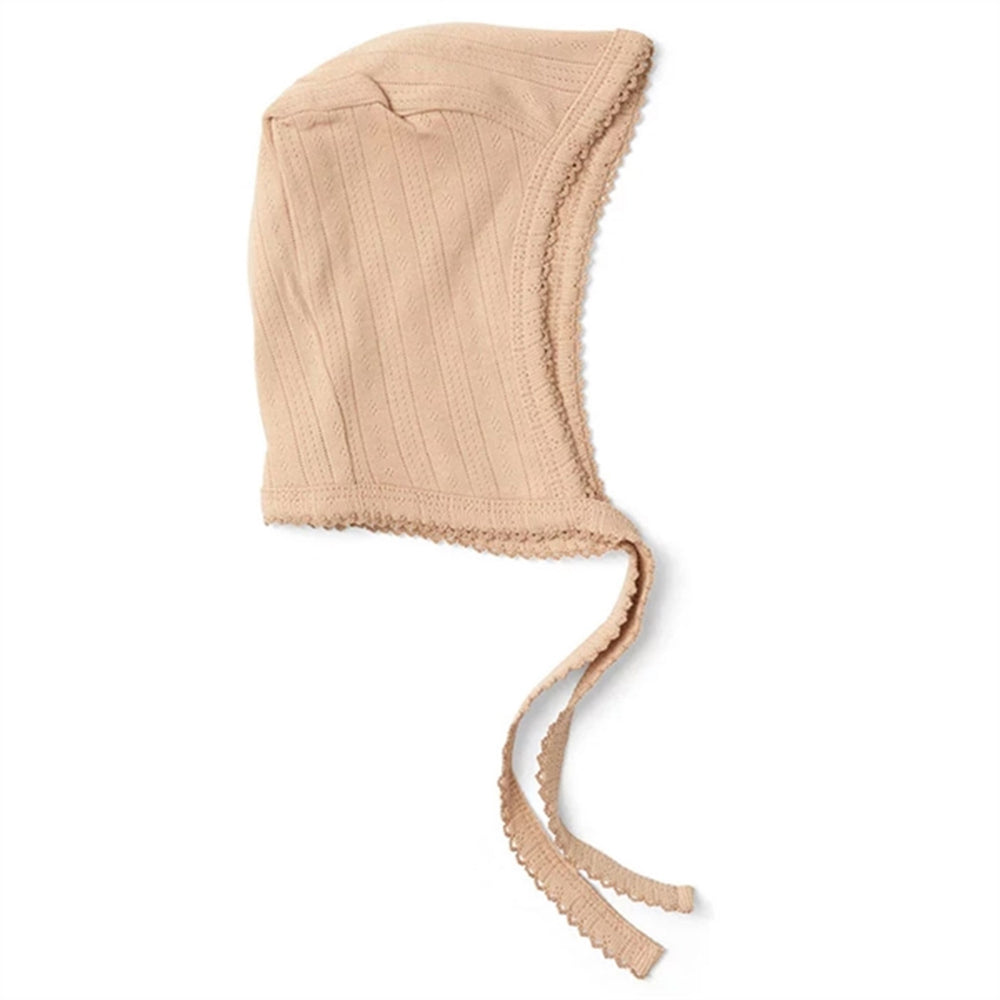 Jättefin mössa från That's Mine för de små. Den här är i en fin ljus nyans med ett spetsmönster. Mössan har en knyt och har en bra form som passar bra på de små.