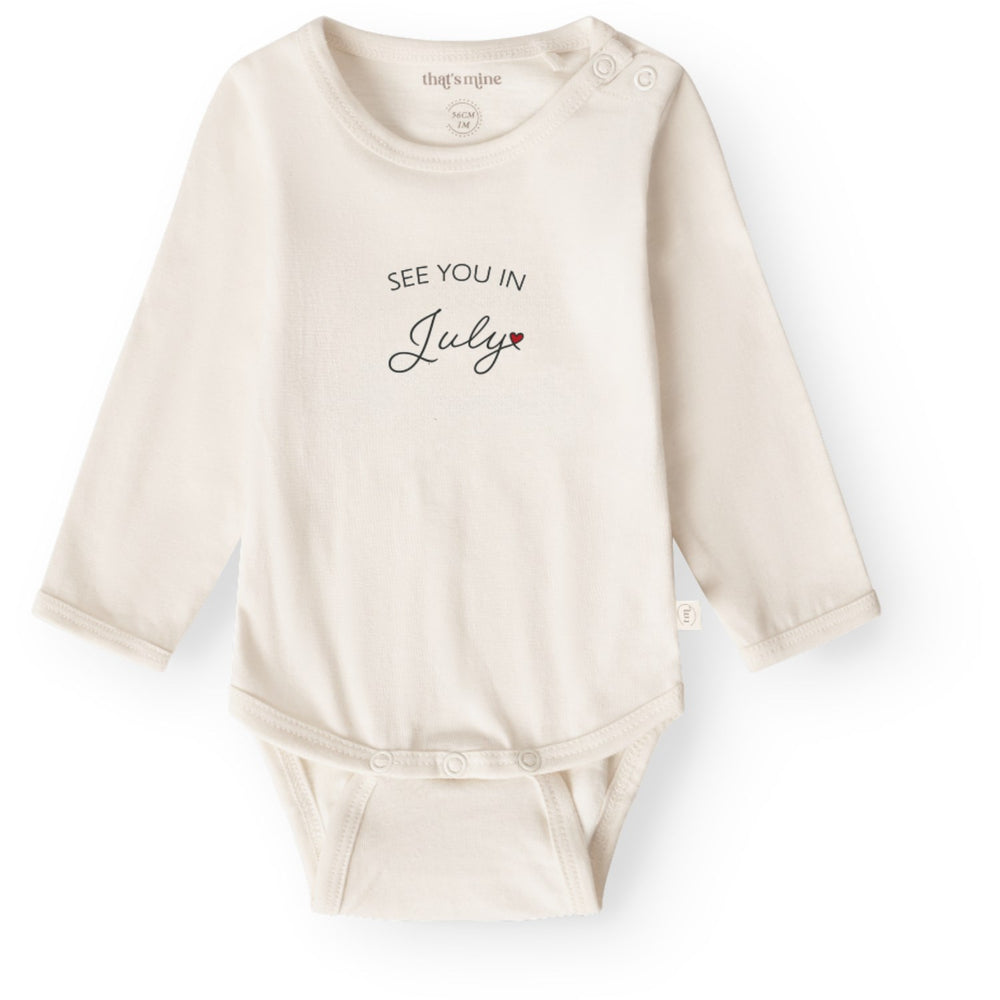 Upptäck den charmiga "Vi ses i juli" Obi bodystocking från That's Mine, designad för att fira de kommande små miraklerna. Tillverkad i mjukt och behagligt material, är denna bodystocking skonsam mot babyns känsliga hud och erbjuder optimal komfort och rörlighet. Med dess stilfulla design och iögonfallande mönster blir den en favorit i garderoben. Dess justerbara storlek och passform säkerställer att den växer med barnet, medan enkel skötsel gör den praktisk för dagligt bruk. Praktiska tryckknappar underlättar på- och avklädning, vilket gör den till en perfekt gåva för att dela den spännande nyheten med nära och kära!