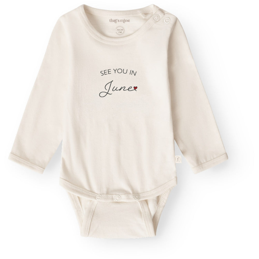 Upptäck vår charmiga "Vi ses i juni" Obi Bodystocking – en oemotståndlig överraskning för blivande mor- och farföräldrar. Tillverkad av mjukt material som är skonsamt mot barnets hud, med en stilfull design som inkluderar lekfulla mönster och en behaglig passform. Idealisk för att tillkännage den spännande nyheten om ett barns ankomst i juni. Dessutom är den enkel att ta av och på, vilket säkerställer att den nya favoriten är både praktisk och bekväm. Ge en gåva som värmer hjärtan och välkomnar den minsta medlemmen i familjen på bästa sätt.