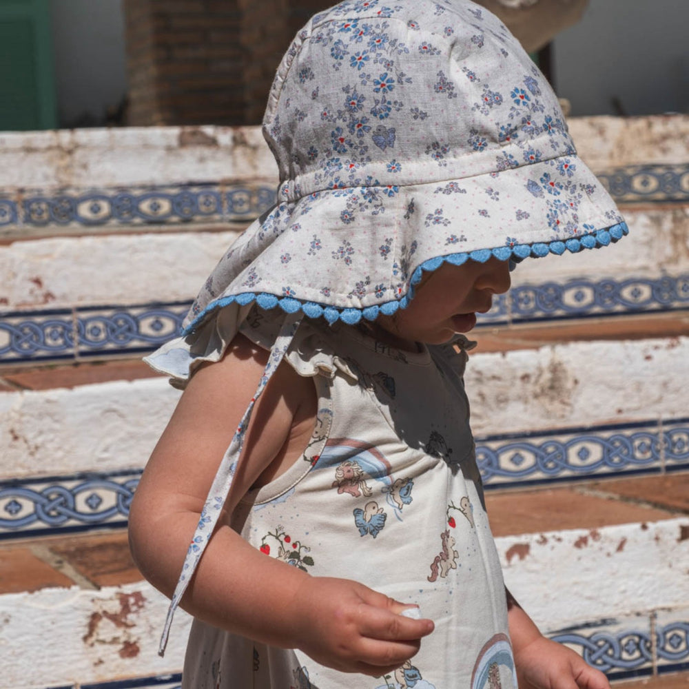 Upptäck den charmiga "Hilda"-solhatten från That's Mine, perfekt för soliga dagar. Denna gula hatt pryds av spridda hjärtan och har ett praktiskt knytsnöre samt resår i nacken för optimal passform. Det breda brättet skyddar ditt barns ansikte mot solen, vilket gör den både snygg och funktionell. Hatten är tillverkad i mjukt material som är skönt för barn att bära, och den är enkel att sköta om. Idealisk för lekfulla sommardagar!