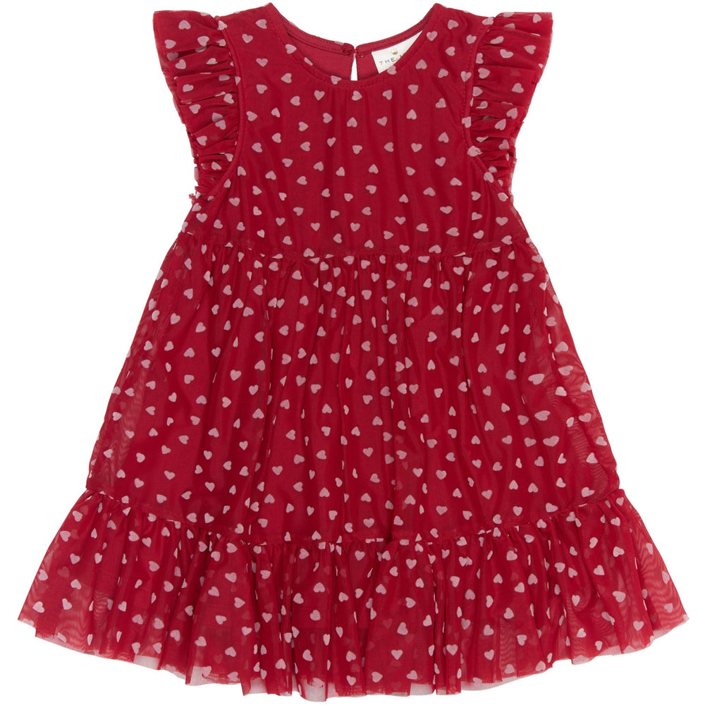 Upplev charmen med THE NEW Siblings Ski Patrol AOP Kamma S_L Klänning, en underbar tillägg till varje festgarderob för barn. Denna klänning kombinerar stilfull design med komfort, tillverkad i GOTS-certifierad ekologisk tyll som är både mjuk mot huden och miljövänlig. Dess flerlagers konstruktion och luftiga material gör den idealisk för lekfulla rörelser, samtidigt som det all-over hjärttrycket och volangdetaljer tillför en lekfull touch.