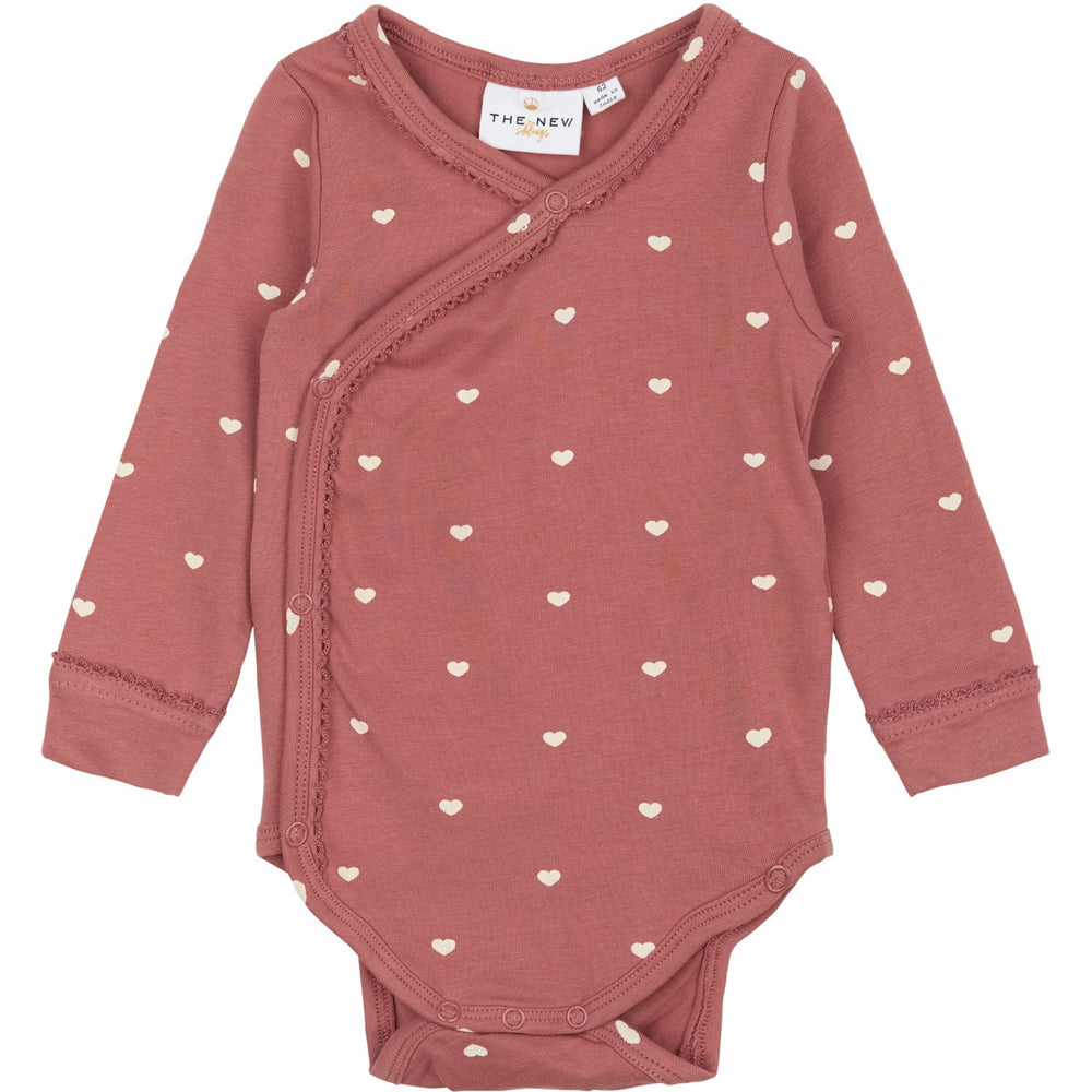 Upptäck den charmiga "Siblings Withered Rose AOP TNSBNova L_S Omlott Body," en mångsidig och stilfull långärmad omlottbody perfekt för ditt barns garderob. Kroppsnära designen med sitt unika hjärtmönster och trivsamma färger, tillgänglig i två variationer, skapar en attraktiv look. Gjord av mjuk, GOTS-certifierad organisk bomull, erbjuder denna body inte bara stil utan också enastående komfort och andningsförmåga. Praktiska tryckknappar längs omlottstängningen förenklar på- och avklädningen, medan den dekorativa kanten lägger till en fin detalj. En utmärkt vardagsklädsel som även passar perfekt för de där extra mysiga tillfällena. Komplettera med TNSBNova leggings för ett heltäckande sött och bekvämt set.