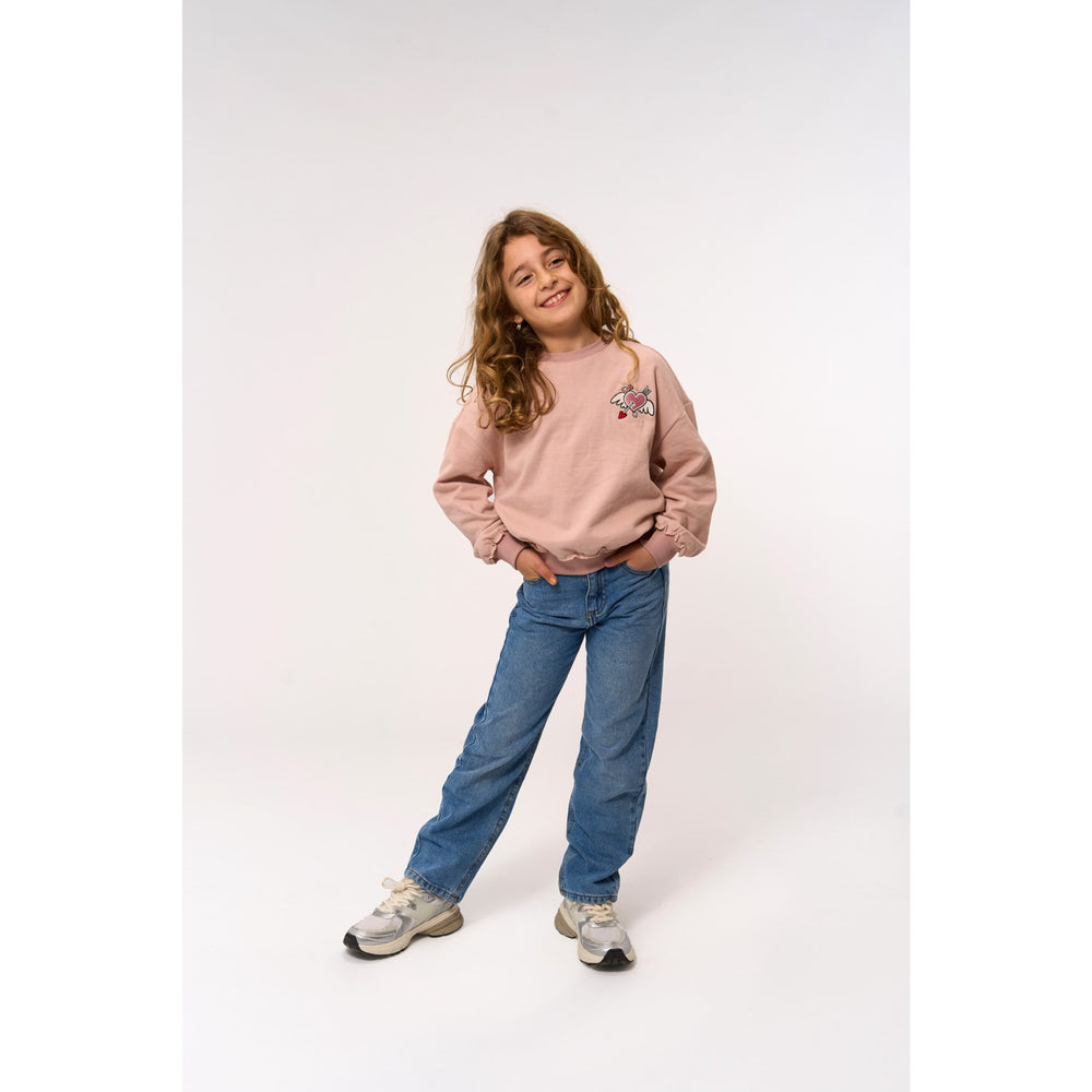 Upplev den ultimata kombinationen av stil och komfort med THE NEW Adobe Rose TNPrimrose OS Sweatshirt. Denna charmiga oversized tröja pryds av ett unikt hjärtryck med vingar och en lekfull pil, vilket ger en särskild touch till ditt barns garderob. Tillverkad i mjukt och hållbart tyg som är GOTS organic certifierat, garanterar den både miljömedvetenhet och långvarig komfort. Den specialdesignade passformen tillsammans med ribbstickade muddar, fåll och halsringning erbjuder en skön och flexibel användning, perfekt för allt från skola till lek. Låt ditt barn uttrycka sin personlighet och känna sig bekväm hela dagen i denna vardagschicka och miljövänliga sweatshirt från THE NEW.