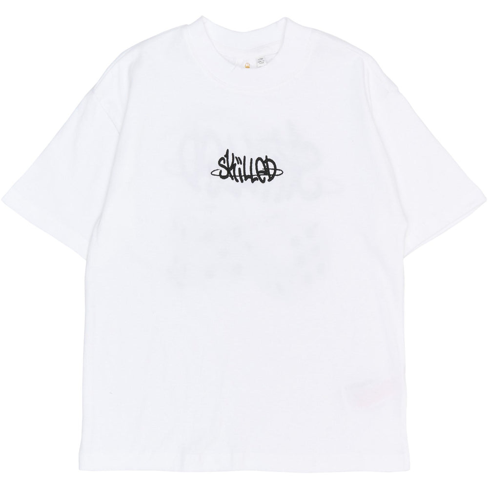 Uppdatera din lilla äventyrärs garderob med den här lekfulla och stiliga oversized t-shirten från THE NEW. Tillverkad av 100% GOTS-certifierad ekologisk bomull säkerställer denna t-shirt komfort och hållbarhet under alla barnets aktiviteter. Den rymliga passformen kombinerat med en sofistikerad vit bas och iögonfallande designer så som det subtila "SKILLED"-broderiet på framsidan samt de två blå tärningarna och den stora "SKILLED" designen på baksidan, gör denna t-shirt till både en bekväm och trendig del av varje outfit. Idealisk för allt från skola till lekplatser, denna t-shirt erbjuder bekvämlighet och stil dag efter dag.