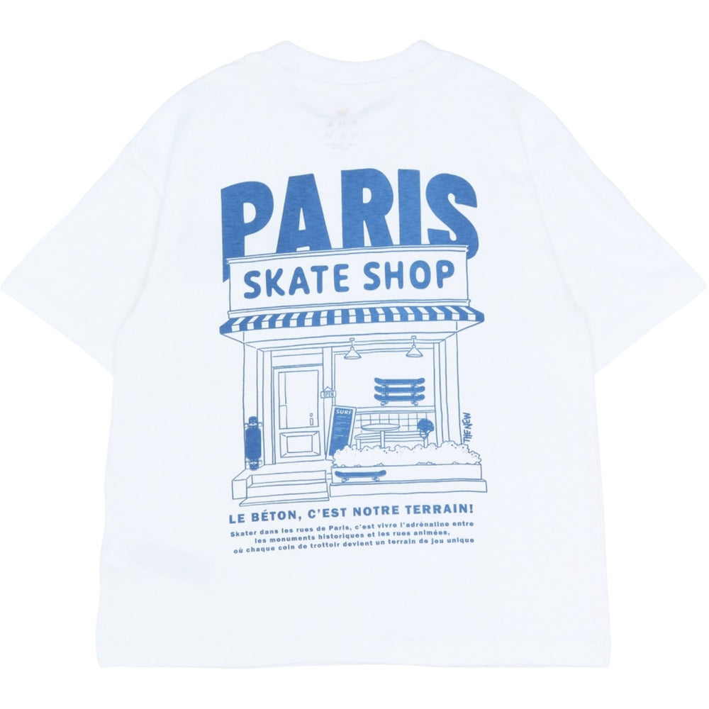 Upplev komfort och stil med vår nya ljusa vita Tnseymore Os S_S Tee för pojkar. Tillverkad av mjukt och hållbart 100 % GOTS-certifierat ekologiskt bomull, garanterar denna t-shirt skönhet och kvalitet i varje söm. Med en diskret men stilfull blå grafik med texten "PARIS SKATE SHOP" på bröstet, är denna t-shirt ett måste i varje ung modeentusiasts garderob. Den raka passformen och den klassiska runda halsringningen bidrar till en bekväm användning, oavsett aktivitet.
