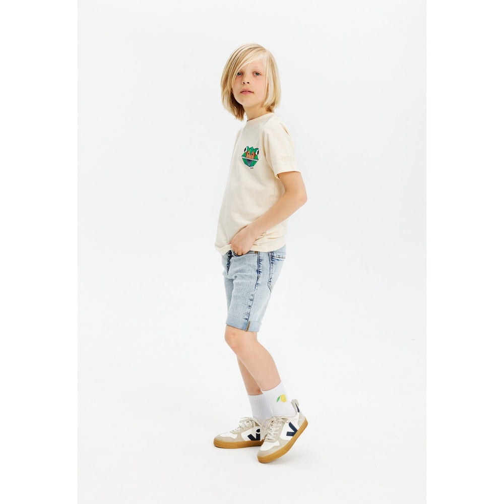 Upptäck våra nya ljusblå denimshorts, perfekta för barn som älskar att röra sig fritt och vara bekväma. Tillverkade av högkvalitativt mjukt material, kombinerar dessa shorts hållbarhet med en lekfull stil. Den fräscha ljusblå nyansen och de nätta mönstren ger ett roligt inslag i varje barngarderob.