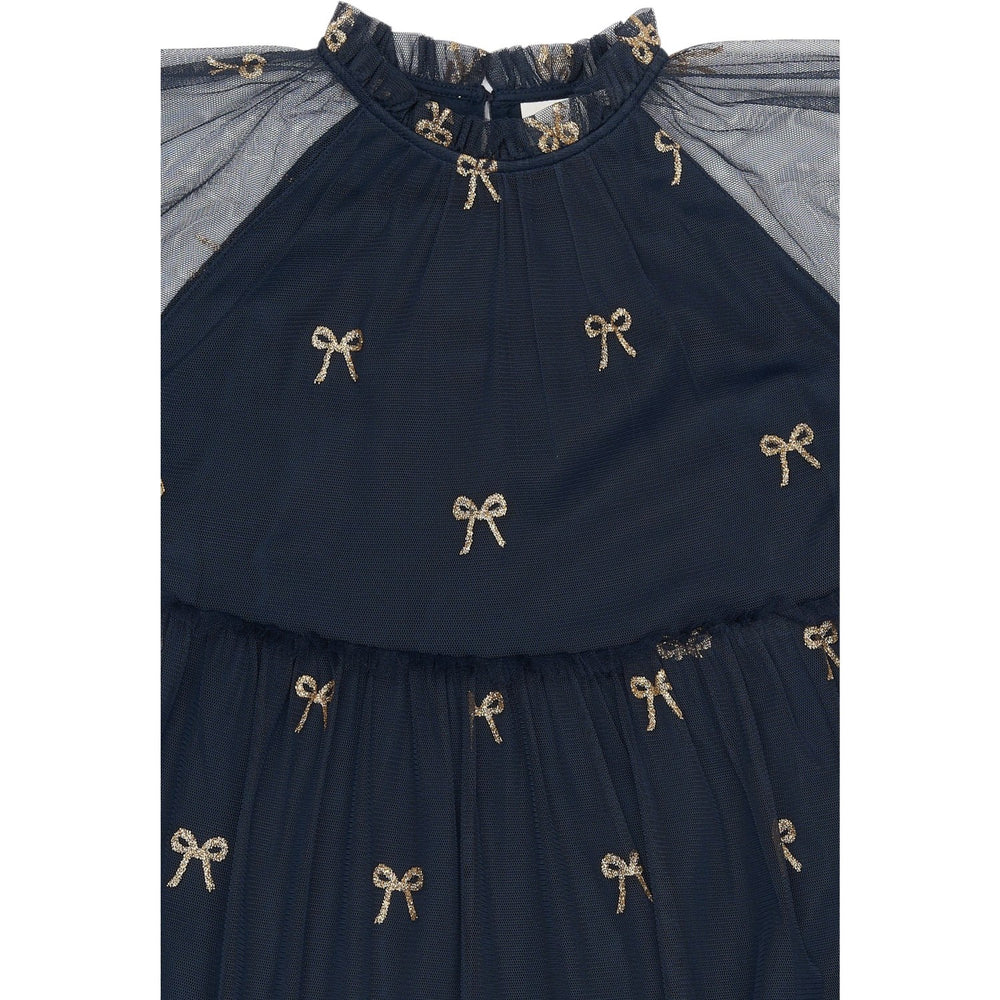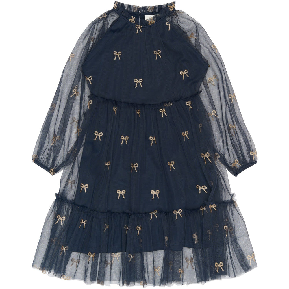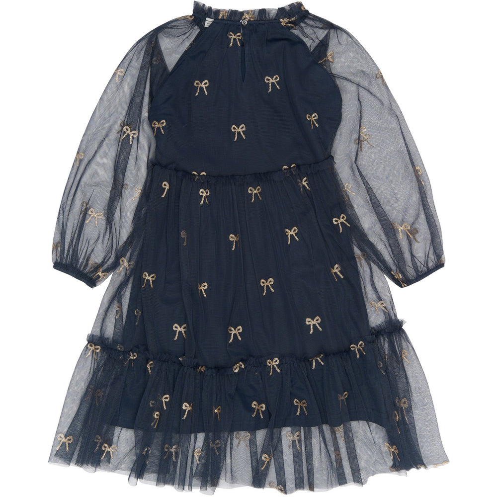 Upptäck den charmiga "New Navy Blazer AOP Rudelle L_S Klänning" från THE NEW, en perfekt kombination av komfort och stil för ditt barns garderob. Denna klänning har en tidlös design med en trendig marinblå bas och angenämt guldglittriga rosetter, vilket gör den idealisk för festliga sammanhang eller vardagligt bruk.