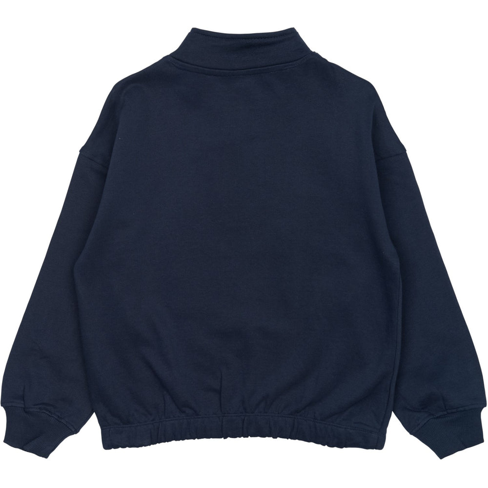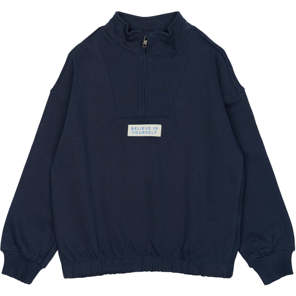 Upplev ultimat komfort med stilen från The New Navy Blazer Pax Oversize Sweatshirt. Den här mysiga och överdimensionerade sweatshirten i mörkblått är tillverkad av GOTS-certifierad ekologisk bomull, vilket gör den både miljövänlig och skonsam mot barnens känsliga hud. Designen kännetecknas av en halv dragkedja som inte bara tillför stil utan även praktiska fördelar, så som enkel påklädnad.