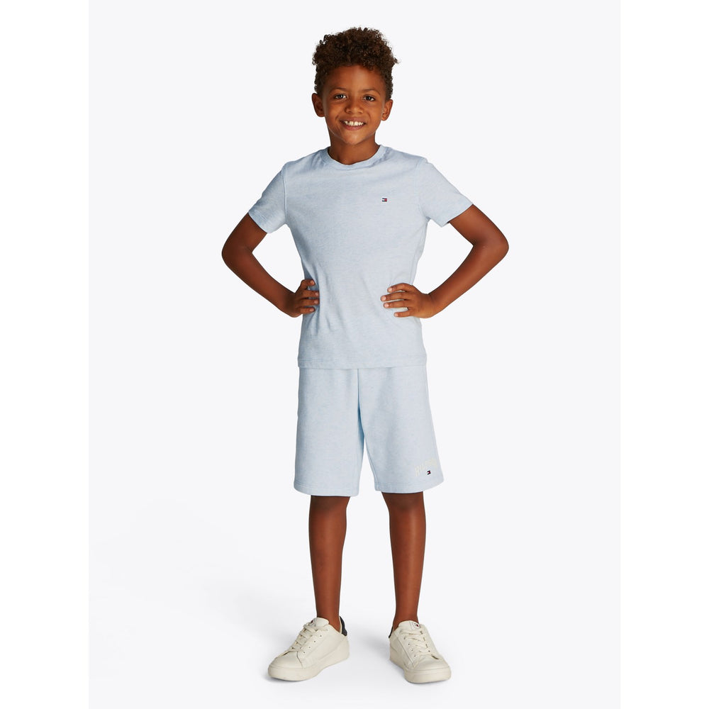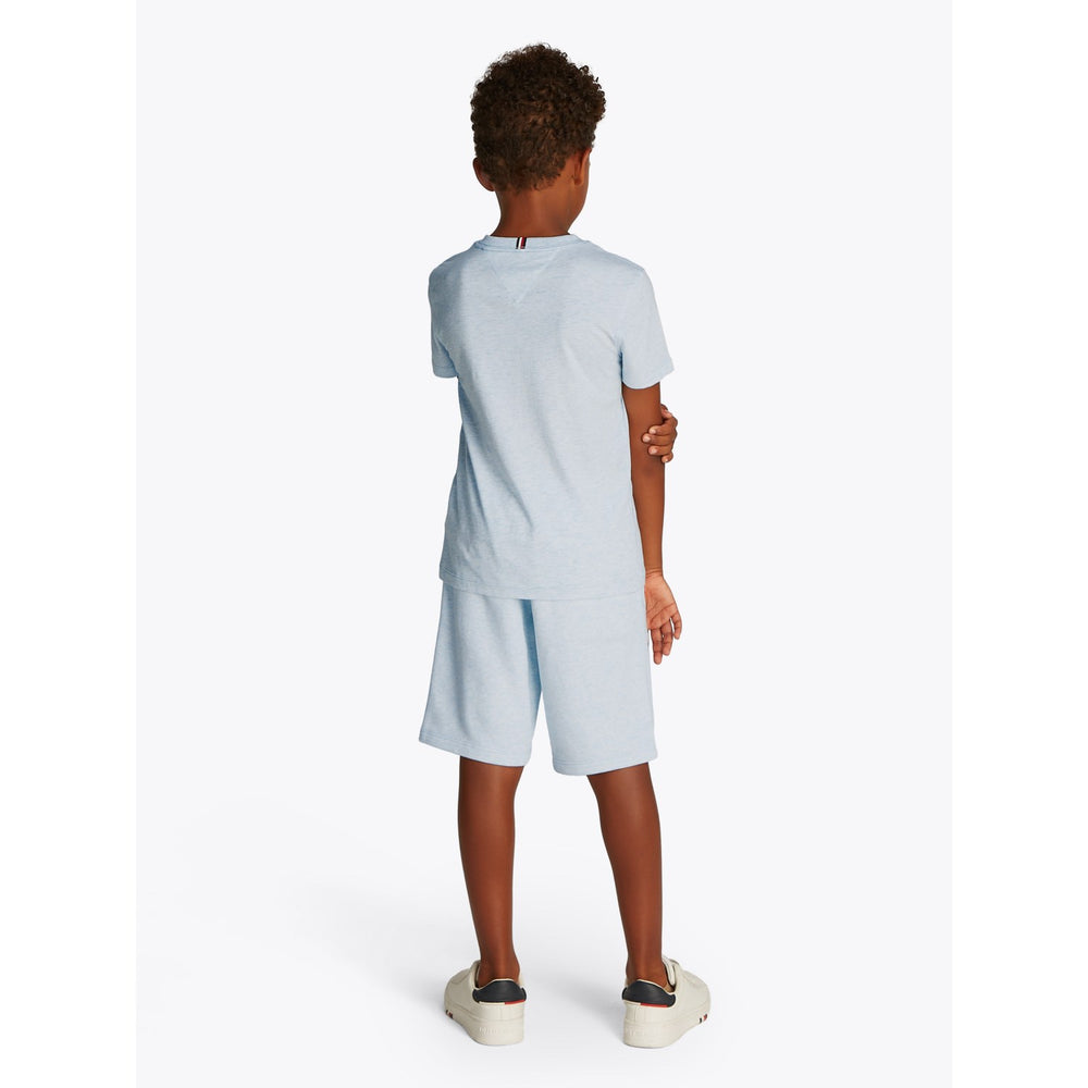 Upptäck komforten och stilen med Tommy Hilfiger Breezy Blue Heather Essential Bomull Reg T-Skjorta. Den här T-skjortan i mjuk Bomull och klassisk snitt ger en avslappnad passform och är perfekt för barnets aktiva liv. Med en krispig blå färg och diskret logga är den både stilig och funktionell. Idealisk för allt från skola till lek, dess underhåll är lika enkelt, bara att tvätta i maskin.
