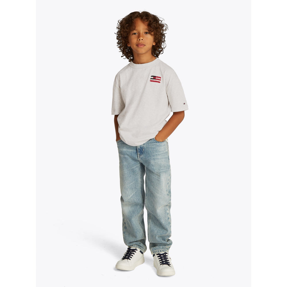 Upptäck den charmiga Tommy Hilfiger t-skjortan i Snow White Heather, perfekt för alla barns garderob. Tillverkad i mjukt och hållbart material med det ikoniska flaggtrycket ger den både stil och komfort. Denna t-skjorta är designad för att passa perfekt med sin avslappnade passform, vilket gör den idealisk för lek och vardagsäventyr. Dess underhållsvänliga och slitstarka egenskaper säkerställer att den håller längre, samtidigt som den behåller sin charm och färg. Ett utmärkt val för mode- och kvalitetsmedvetna föräldrar!