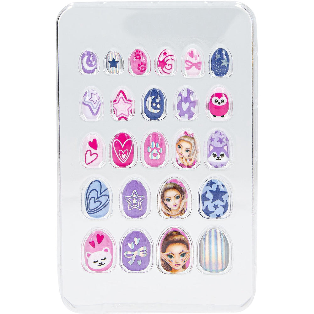 Ge din lilla stjärna chansen att utforska världen av skönhet på ett säkert och roligt sätt med TOPModel Beauty And Me Artificial Nails. Detta set med 24 självhäftande konstgjorda naglar är perfekt för små händer som älskar att pyssla och uttrycka sig. Designen bjuder på en mjuk avsmalnande form samt en iögonfallande blandning av glitter och glans i underbara nyanser av rosa och lila, vilket lägger till en prinsesslik charm.