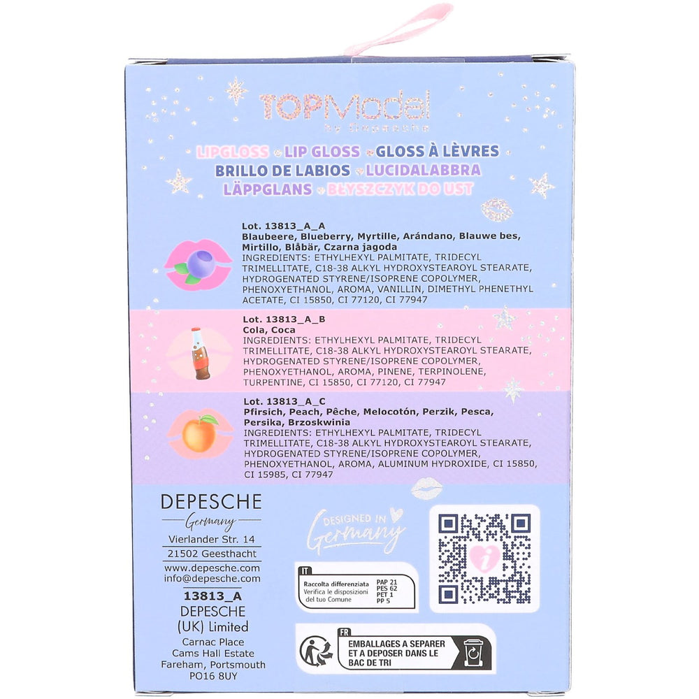 Upptäck det förtjusande TOPModel Beauty And Me Lip Gloss Sett, en perfekt gåva för den lilla skönhetsälskaren. Detta set inkluderar tre olika tuber med läppglans i en attraktiv förpackning som är perfekt för att pigga upp eller komplettera barnets sminkkollektion. Varje tub innehåller 8 ml läppglans i glittrande nyanser och ljuvliga dofter: blåbär, cola och persika, vilket gör dem spännande att utforska och använda. Läppglansen från TOPModels är dermatologiskt testade och glutenfria, vilket säkerställer att produkterna är trygga för barn att använda. Dessa charmiga skönhetsprodukter är designade för att vara enkla att använda så att även de yngsta barnen kan tillämpa dem själva utan besvär. Dessutom är de lätta att bära med sig och förvara, vilket gör dem praktiska att ta med på resor eller förvara säkert hemma. Användningen av läppglanset inte bara förhöjer barnets utseende men erbjuder också en lekfull väg att lära om färger och dofter. Det ger en perfekt introduktion till världen av smink på ett roligt och pedagogiskt sätt som är anpassat för barns vilja att utforska och leka.