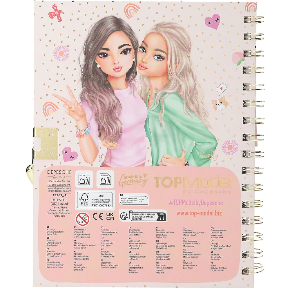 Dagbokens praktiska format och hållbara lock säkerställer att både små hemligheter och tillhörande nycklar förblir säkra. Dessutom är detta mer än bara en dagbok; det inkluderar ett färgglatt pärlarmband med texten 'HAPPY', vilket ger ett extra leende varje dag. Dagbokens lockande klistermärkesark med TOPModel-klistermärken bidrar ytterligare till kreativiteten och gör personlig anpassning möjlig.