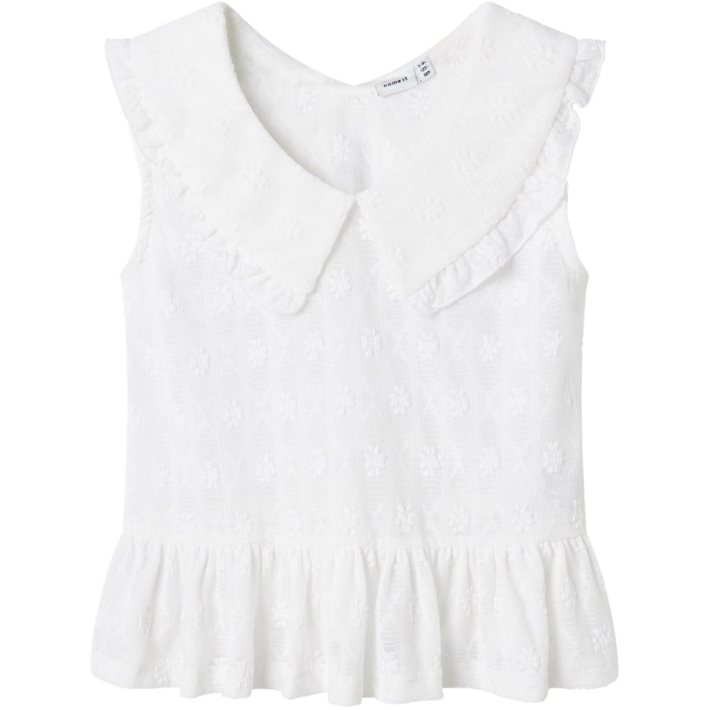 Uppfriska din lilla äventyrares stil med Name It Bright White Holo Kort Topp. Tillverkad av jersey, ett stretchigt och lätt material som känns mjukt både utvändigt och invändigt, erbjuder denna topp optimal komfort och flexibilitet. Med dess ärmlösa design och V-ringad hals ger den en modern känsla som passar både till vardags och fest. Dess neutrala vita ton med fina detaljer gör den lätt att matcha med andra plagg. En perfekt kombination av stil och funktionalitet för ditt barns garderob.