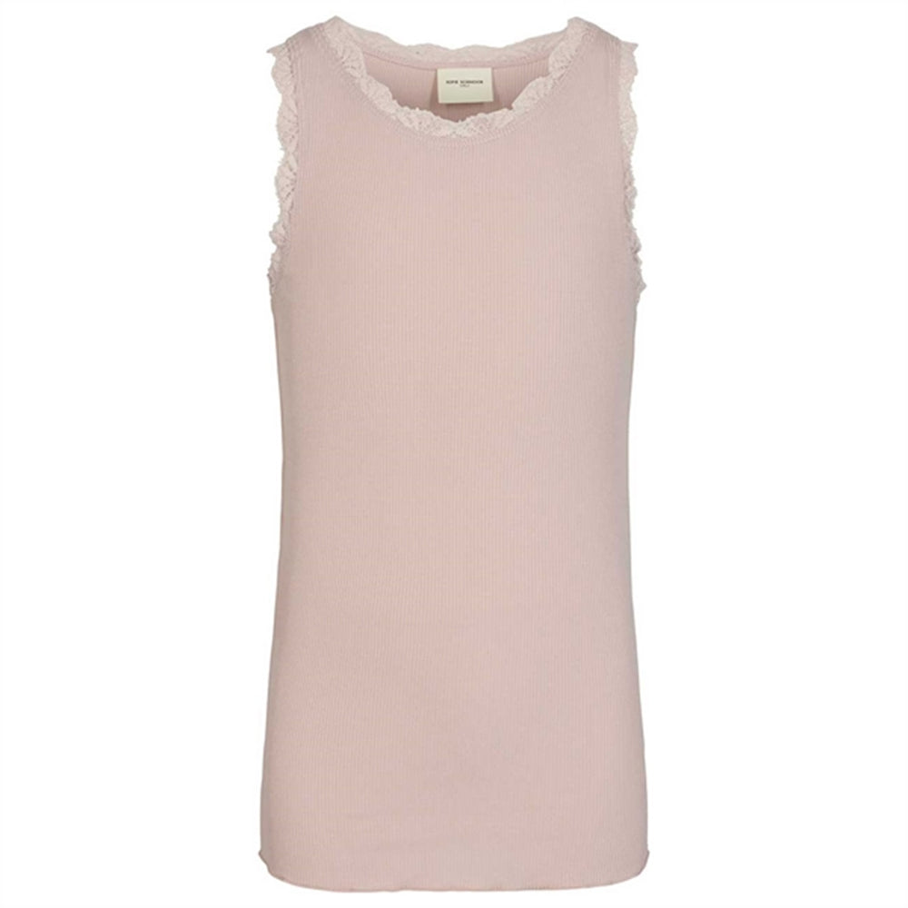 Super smart top til de større piger. Denne i en flot lys rosa farve med fine blondekanter. Toppen er med rund hals og uden ærmer. Helt perfekt under strik eller blazer.
