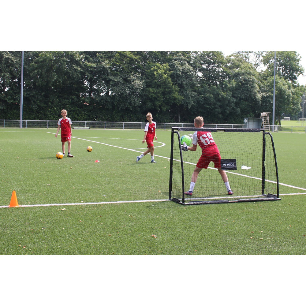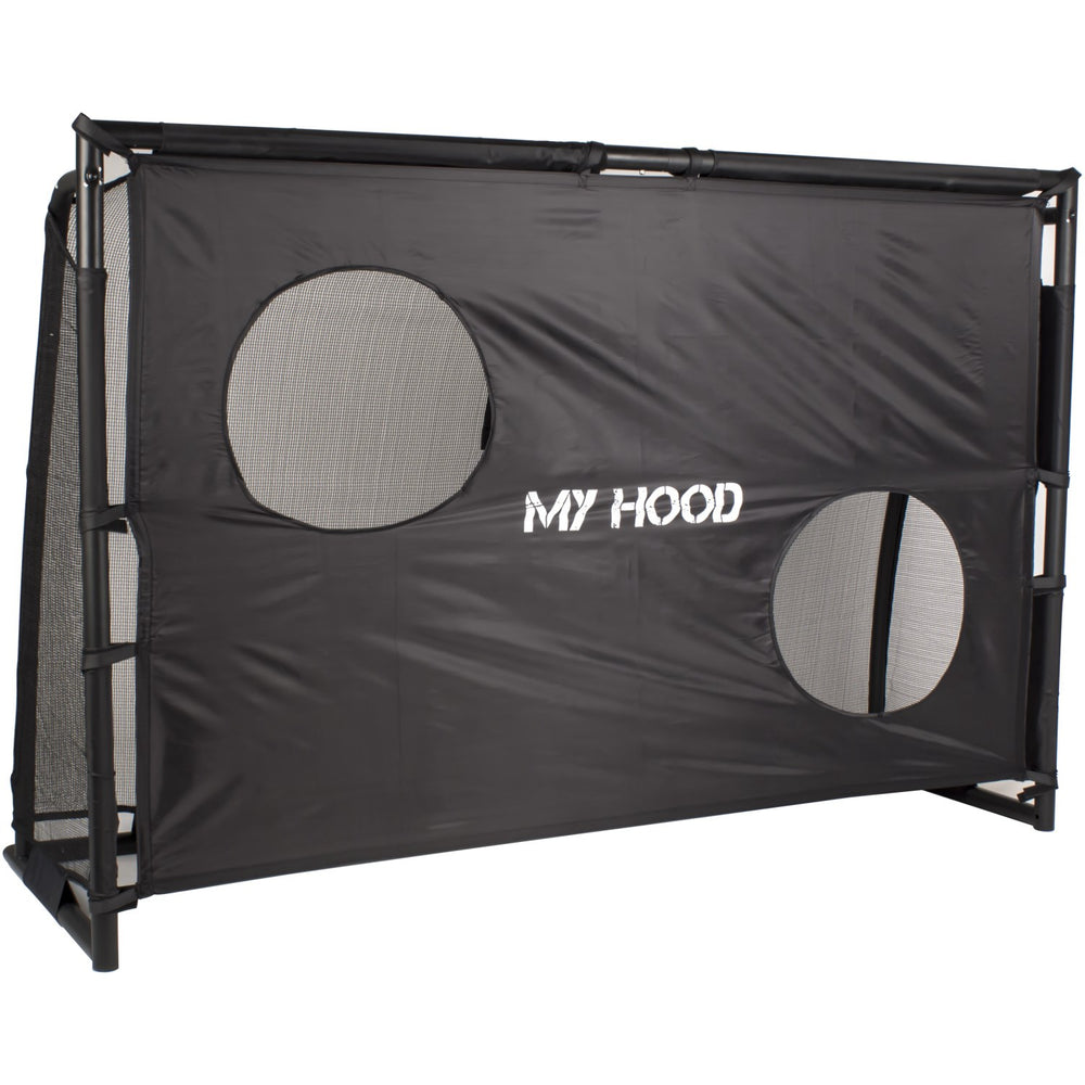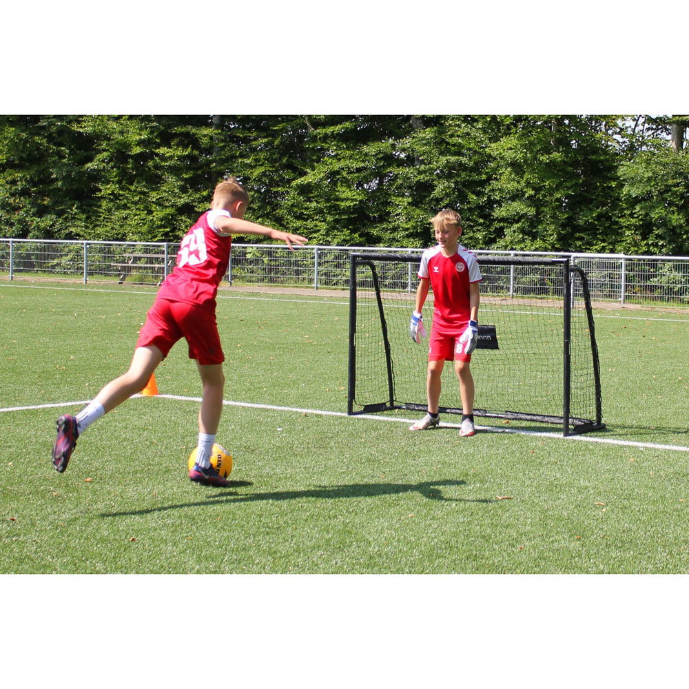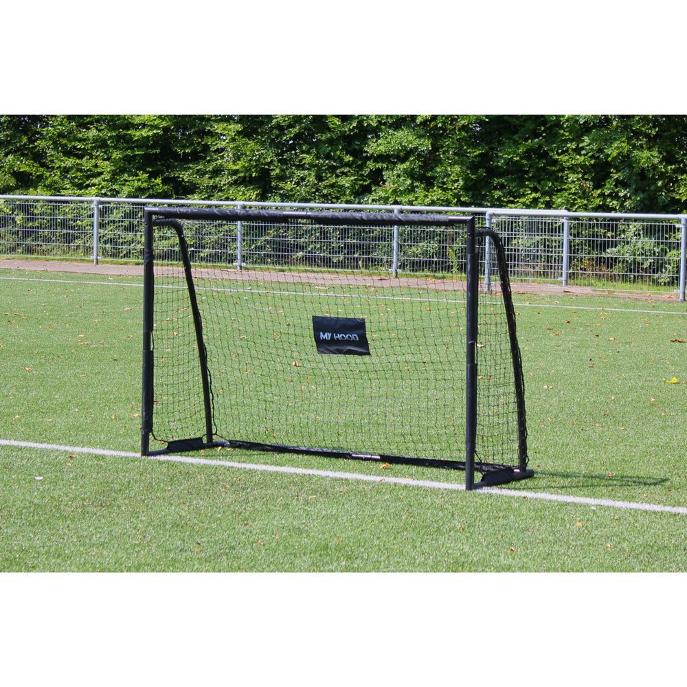 Upptäck det perfekta tillägget till varje barns lekutrymme med "My Hood Munich" fotbollsmål, en robust och säker inrättning för timmar av utomhusaktivitet. Designad med fokus på säkerhet, är detta mål tillverkat av galvaniserat stål med en slitstark svart pulverlackföring, vilket garanterar långvarig användning och motståndskraft mot väder och vind. Tack vare den solida konstruktionen med en rördiameter på Ø38 mm och en väggtjocklek på 1,5 mm, erbjuder det stabilitet även under intensiva lekstunder.