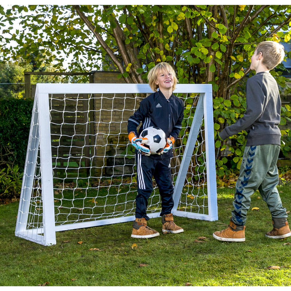 Utforska glädjen i fotboll med vårt charmiga Mini My Hood White Homegoal Pro! Detta småskaliga trämål i fotboll är perfekt för att skapa roliga och spännande stunder i trädgården. Trots sin kompakta storlek på 150 x 120 cm, erbjuder detta mål en idealisk spelupplevelse, speciellt anpassad för yngre barn.