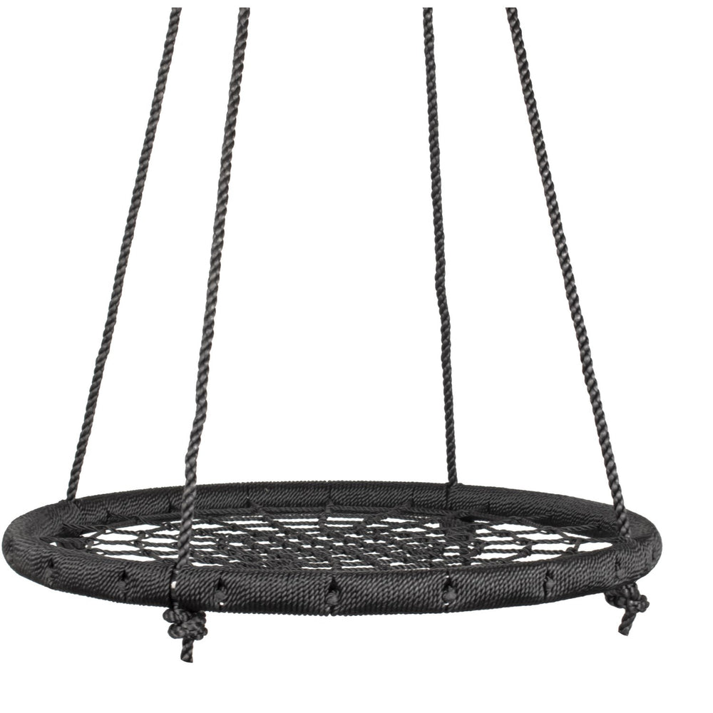 • Extra: Storlek: Ø100 cm Ø45 mm svartlackerad stålram Rep Typ: PE Rep i botten: 7 mm Rep för upphängning: 16 mm, 180 cm Inkl. 2 ringar för montering i 8 mm förkromat stål CE-godkänd Vikt: 7 kg Max belastning 150 kg Kan användas både inomhus och utomhus