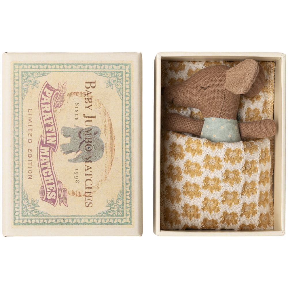 Maileg Sleepy Wakey Baby Mus I Tændstikæske - Blå