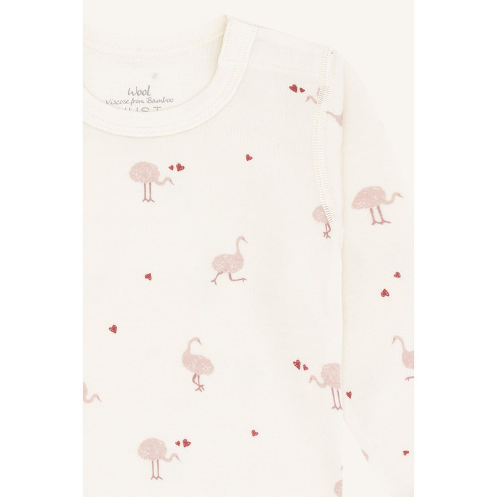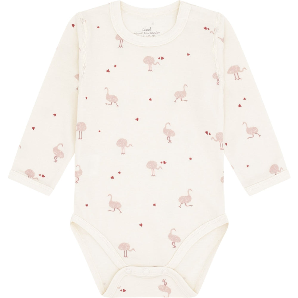 Gör vardagen sötare med Hust & Claire Off White Baloo Bodys, prydd med ett charmigt struts-motiv. Tillverkad i mjukt material som är skonsamt mot barnets hud, erbjuder denna body en bekväm passform och är lätt att ta på och av tack vare praktiska tryckknappar. Dess neutrala färg och lekfulla design gör den lätt att matcha med andra plagg. Perfekt för såväl lek som vila!