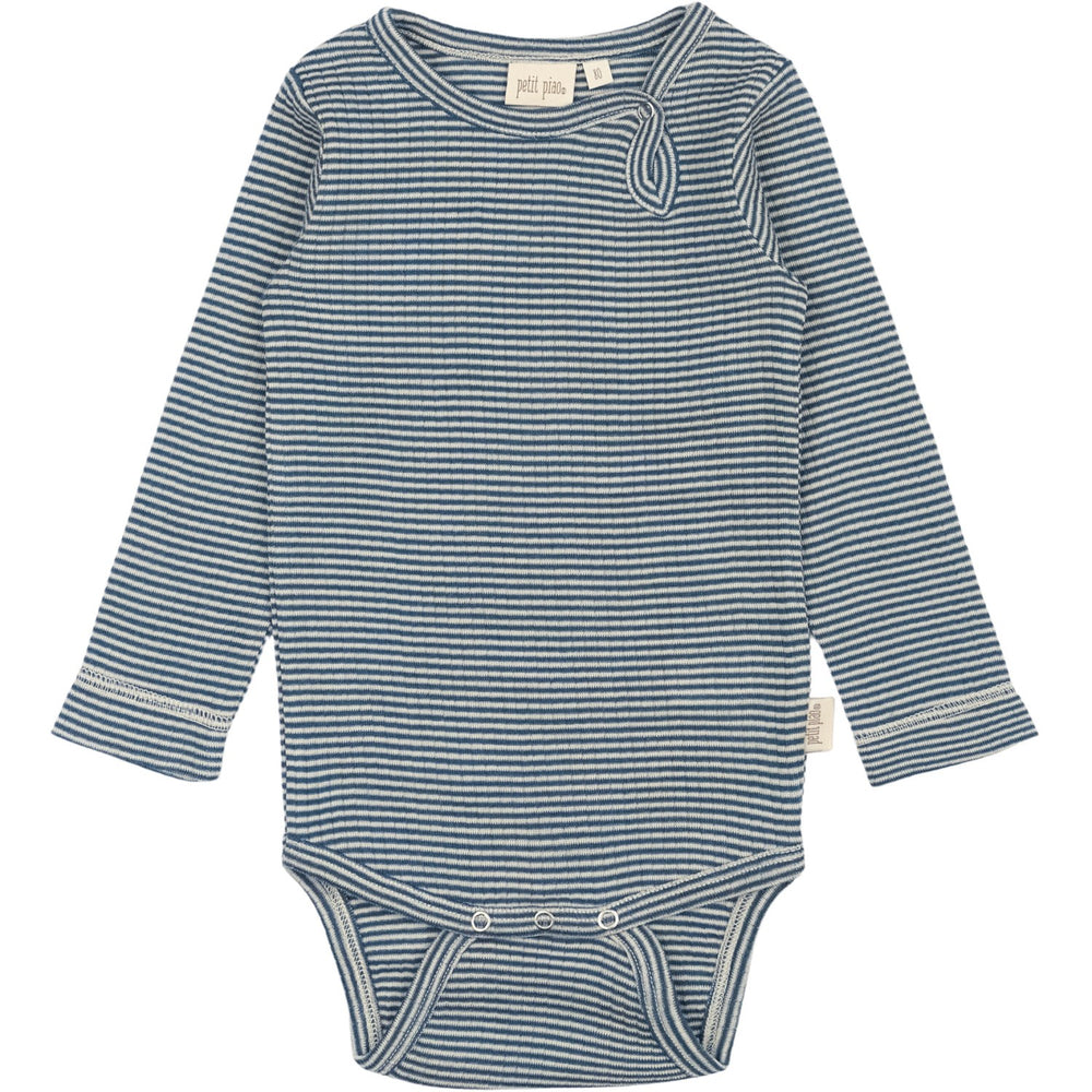 Petit Piao Ensign Blue/dark Off White PPDante Body L/S Merino Ull Striped
