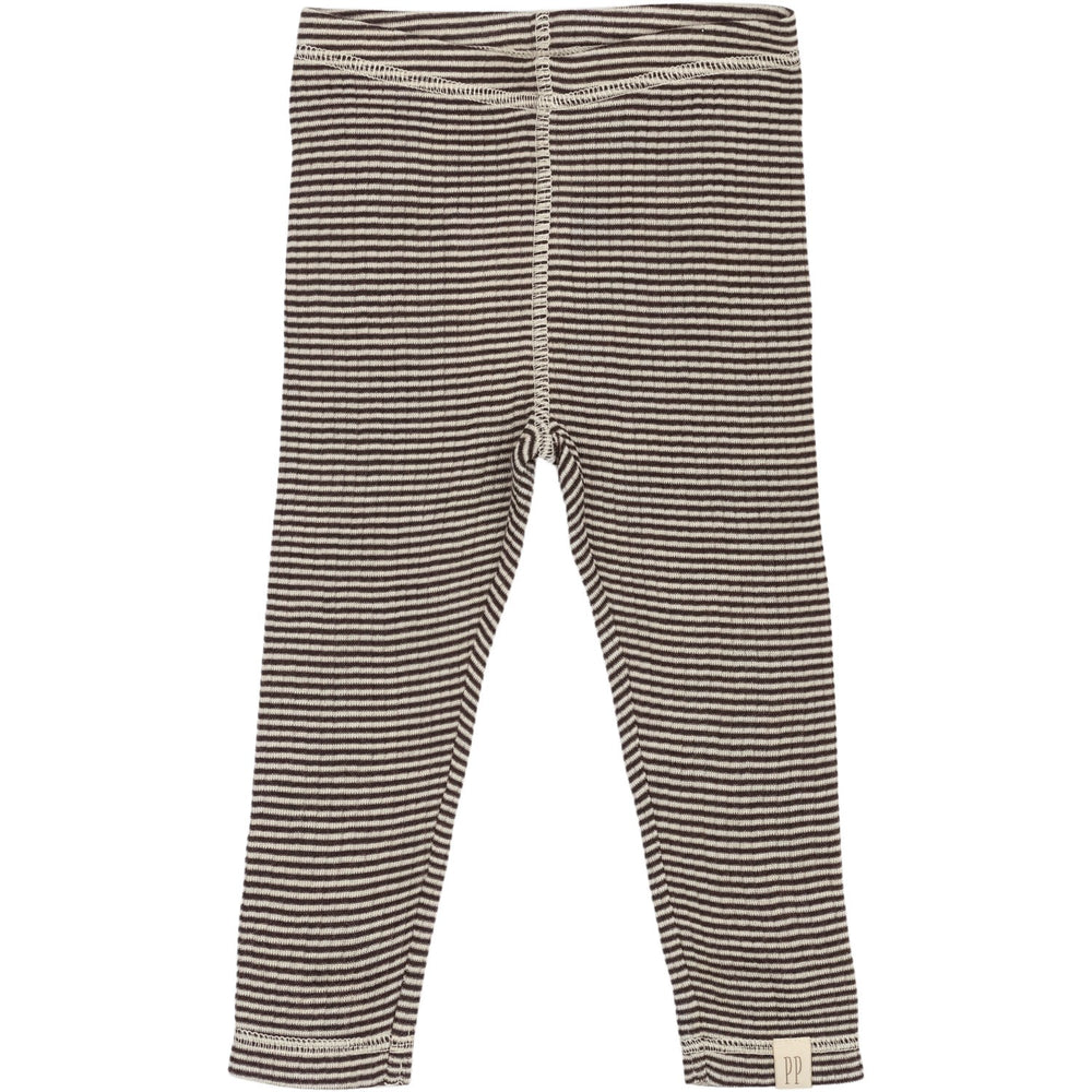 Petit Piao Coffee Bean/Dark Off White PPDante Leggings Merino Ull Striped