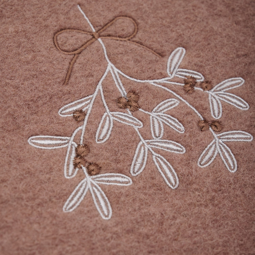 Upplev värmen och stilen med HUTTEliHUT Elefanthatten! Denna charmiga balaclava är tillverkad i en härlig ullblandning med ett mjukt sammetsfoder för optimal komfort. Designen karakteriseras av en spetsig topp och en bred elastisk ribbad kant runt ansiktsöppningen som ger en tät och säker passform. Elefanthatten är också försedd med en fin mistelbroderi på sidan och erbjuder extra längd i nacken för att hålla små halsar varma. Materialets hållbarhet säkerställs med rätt vård: mild ulltvätt rekommenderas för att behålla kvaliteten. Idealisk för kyliga dagar, denna mössa håller ditt barn varmt och stilfullt.