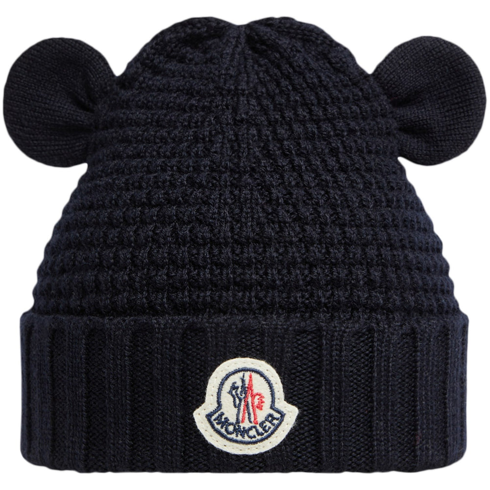 Svep in din lillas noggin i den mysiga värmen i denna bedårande Moncler marinblå mössa! Den här mössan är designad med mjuk ull för att hålla kylan borta och har söta nallebjörnsöron som ger en touch av lekfullhet. Perfekt för både pojkar och flickor, den har en snygg logotyp lapp som markerar deras allra första smak av Moncler lyx . Den här stickade mössan är perfekt för mildare väder och är både charmig och funktionell.