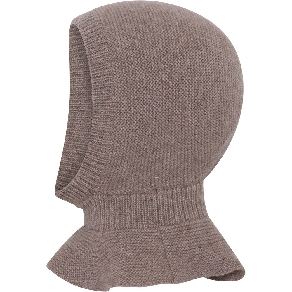 Denna söta babybalaklava från mpKids är perfekt för de små på kalla dagar. Tillverkad av Merinoull och kashmir garanterar den både värme och mjuk komfort. Hatten är utformad med en elefantdesign i en läcker ljusbrun melangefärg, och har en ribbad kant runt ansikte och hals som säkerställer en nära och skön passform. Detta gör den till ett måste för all barnklädsel under höst och vinter.