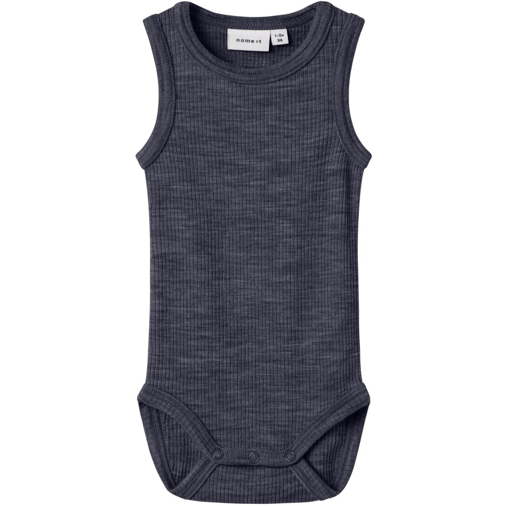 Upptäck den perfekta kombinationen av stil och bekvämlighet för ditt barn med Name It Ombre Blue Nbnwax Ull Rib Tank Body. Denna bodysuit är tillverkad av högkvalitativ ull som är både mjuk och termiskt anpassningsbar, vilket gör den ideell för alla säsonger. Den ombreblåa färgen och det ribbade mönstret tillför en modern touch, medan den ärmlösa designen och den runda halsen erbjuder maximal rörelsefrihet. Tryckknappar i grenen underlättar på- och avklädning. Ta hand om ditt barns komfort varje dag, oavsett väder.