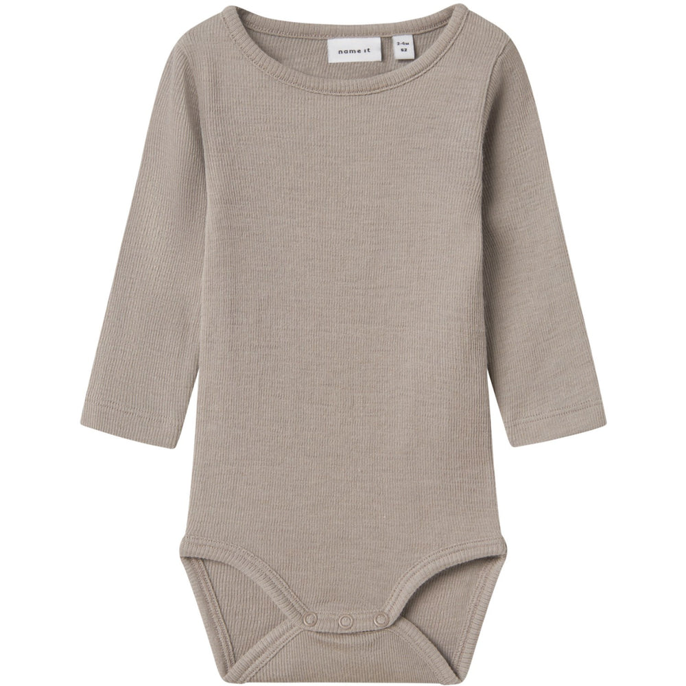 Upptäck den underbara känslan av mjukhet och stil med vår ullbodysuit från Name It. Denna härliga bodys är tillverkad i ribbad stickning med vertikala ränder som inte bara ger en tidlös design utan också utmärkt elasticitet för en skön passform. Den har en klassisk rund hals och långa ärmar, perfekt för att hålla ditt barn varmt och bekvämt. Stängningen består av praktiska tryckknappar i grenen som underlättar blöjbyten upp till storlek 86. Denna bodys är ett utmärkt val för vardaglig komfort och funktionalitet och passar utmärkt i alla barns garderob.