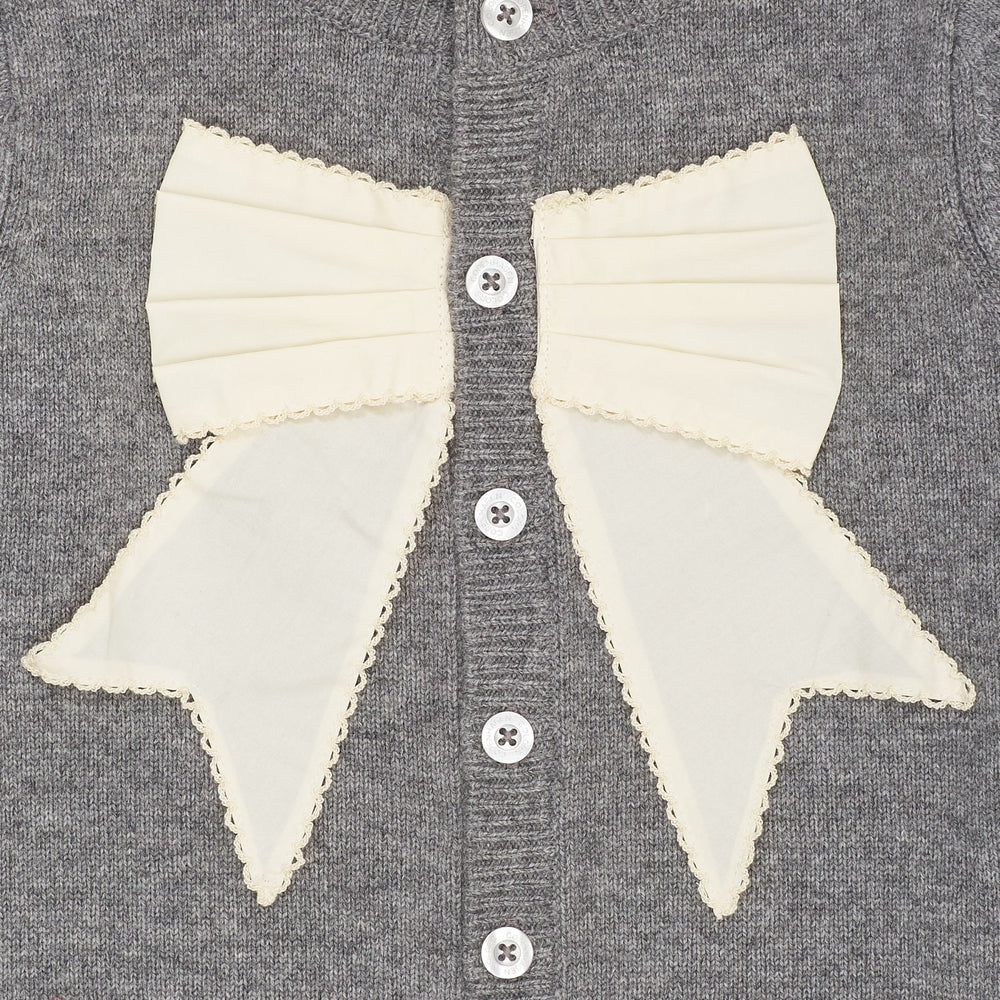 COPENHAGEN COLORS Dk Grey Mel./Cream Comb. Cashmere Cardigan W. Poplin Rosett
