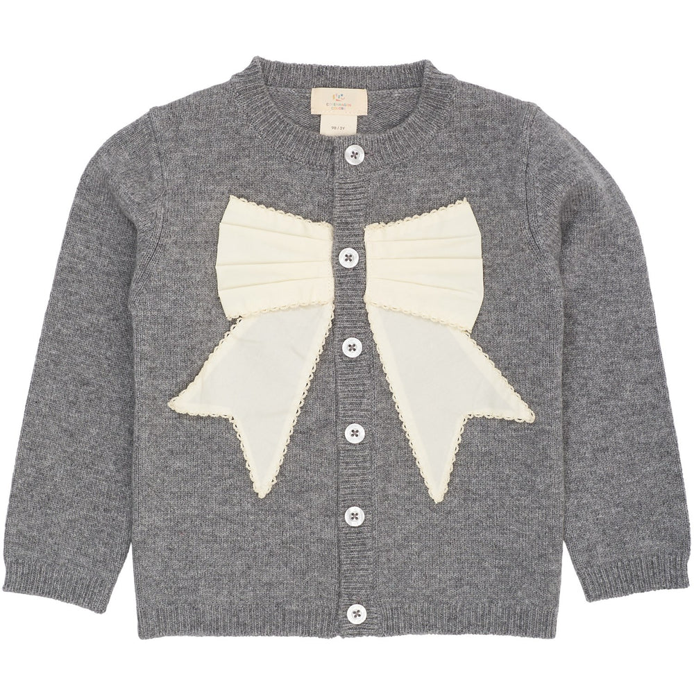 Upptäck den ultimata mysfaktorn med vår Copenhagen Colors kardigan i en elegant kombination av mörkgrått och kräm. Tillverkad av en lyxig blandning av 10% kashmir och 90% ull, erbjuder denna kardigan exceptionell komfort och hållbarhet. Designen accentueras av en charmig rosett i mitten som tillför en lekfull touch. Perfekt för kyliga dagar, dess neutrala färgpalett gör den lätt att matcha med andra plagg i barnens garderob. Handtvätt rekommenderas för att bevara dess fina kvalitet.