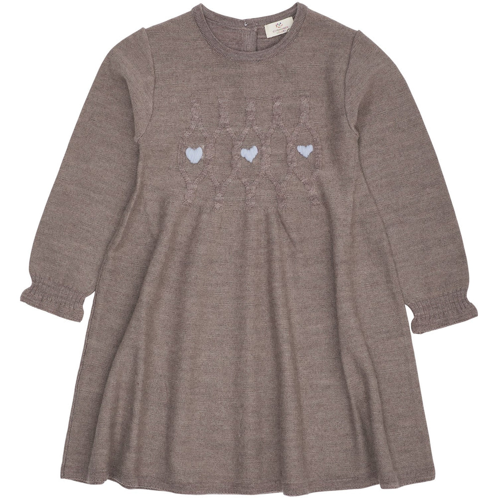COPENHAGEN COLORS Natural Mel. W. Dusty Blue Heart Merino Ls Cable Klänning W. Hearts