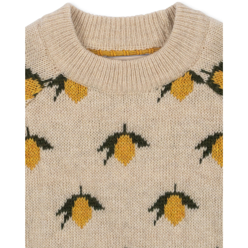 Den mustiga garnkvaliteten inte bara känns skön mot huden utan är också gjord för att tåla barns aktiva lek, samtidigt som den enkla skötseln (maskintvätt på ullprogram) gör det praktiskt för föräldrar. Denna blandning av funktionalitet och stil gör blusen till ett utmärkt val för allt från avslappnade hemmadagar till festligare tillfällen. Medic de läckra citronmönstren och pigga färgsättningen, ger blusen en charmig och barnvänlig touch till alla outfits. Gör dig redo för att låta ditt barn utforska dagen med stil och komfort!