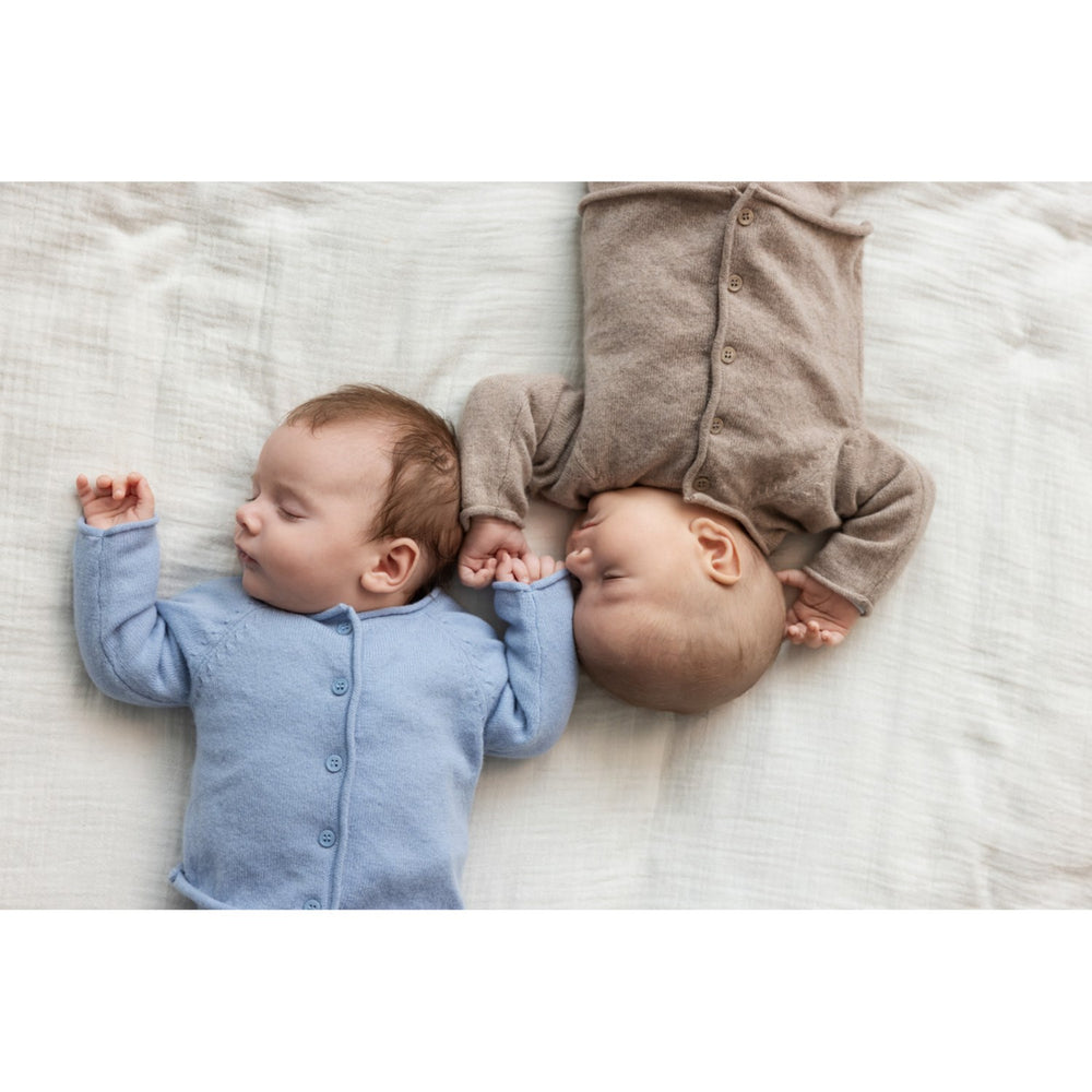 Upptäck vår mysiga MarMar Cashmere Alpaca Melange Tamla Cardigan – perfekt för kyliga dagar! Denna cardigan är tillverkad av en lyxig blandning av kashmir och alpacka, vilket garanterar både värme och mjukhet. Den är utformad med stilfulla rullkanter och praktiska raglanärmar för optimal rörelsefrihet, samt har en klassisk knäppning framtill. Dess neutrala färg och subtila melange-mönster gör den enkel att matcha med andra plagg. En tidlös och bekväm tillägg till varje barns garderob. Skötseln är enkel, vilket gör den till en favorit för både föräldrar och barn. Material: 100% Kashmir Tvättråd: Tvätta för hand