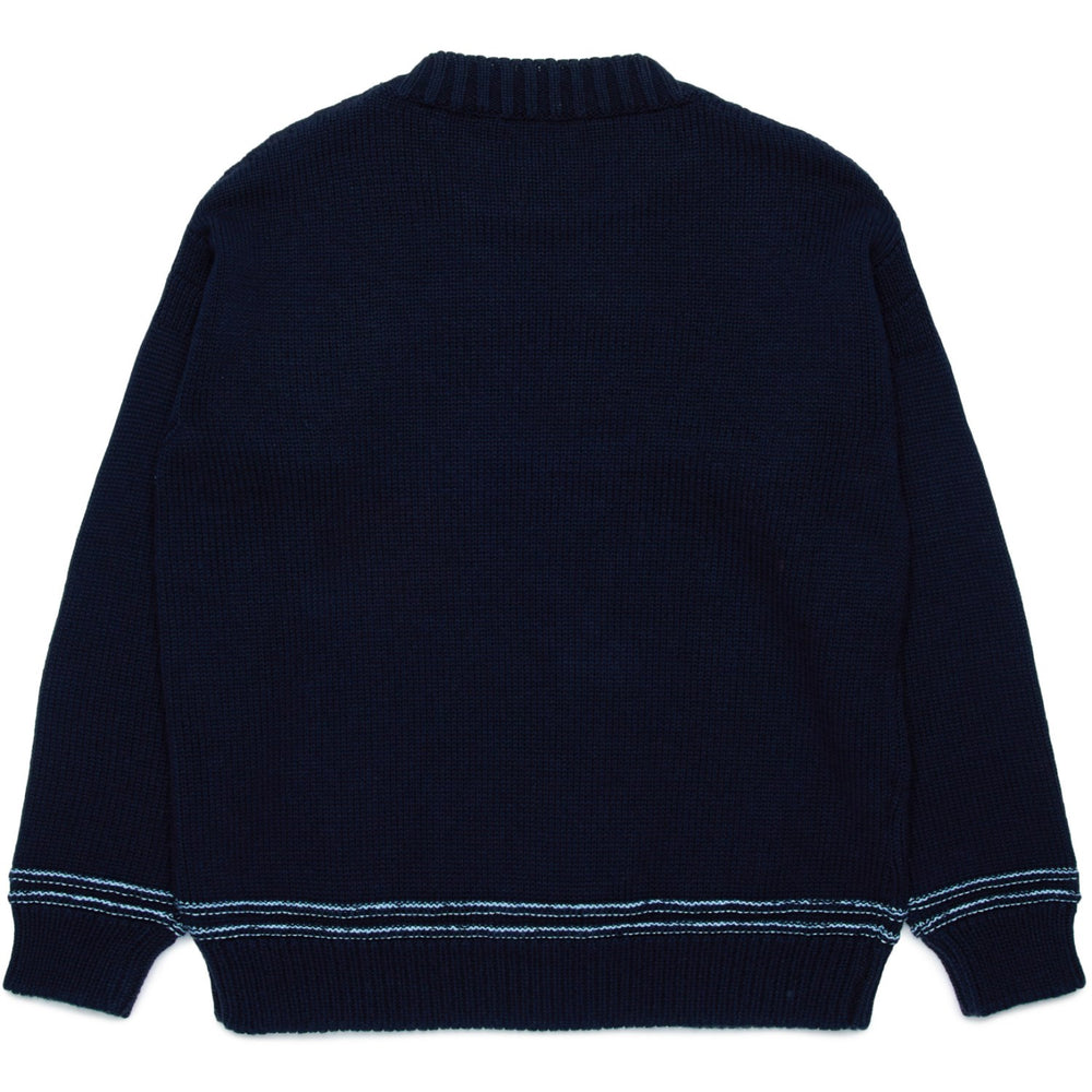 Dyk in i komfort och stil med Marni Blue Navy Knitted Sweater! Den här fantastiska tröjan är perfekt för små äventyrare som älskar att leka utan att kompromissa med stilen. Den djupa marinblå färgen och den mjuka stickningen ser till att ditt barn håller sig varmt samtidigt som det ser smart ut. Perfekt för både vardagsbruk och speciella evenemang, den här stickade tröjan kommer snabbt att bli en favorit i ditt barns garderob!