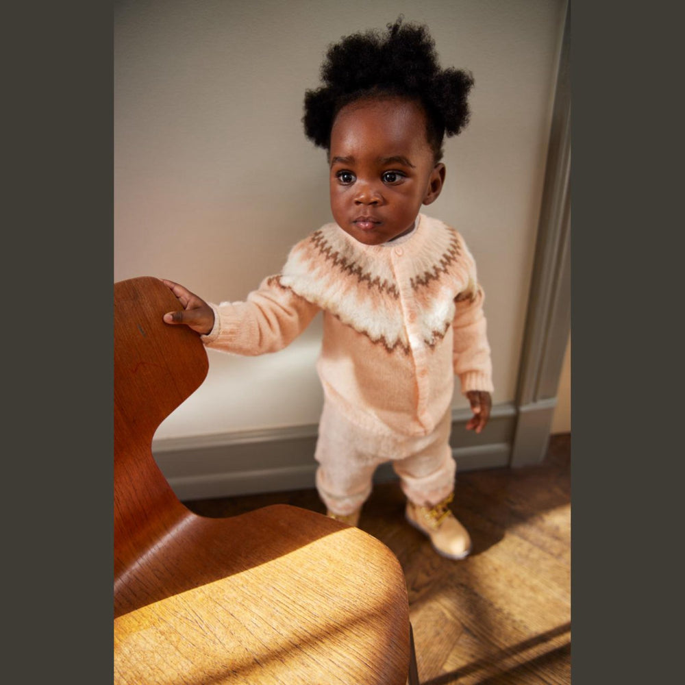 Låt din lilla älskling utstråla stil och komfort med "Molo Petal Blush Bay Cardigan". Denna bedårande cardigan är tillverkad av högkvalitativa material som garanterar både hållbarhet och mjukhet mot känslig barnhud. Med sin unika design och iögonfallande rosa nyans, kompletterad av ett subtilt blommönster, är denna cardigan ett måste i barnens garderob. Cardiganen är särskilt utformad för att passa barn bekvämt, med en storlek och passform anpassad för livliga lekdagar. Hög komfort och användbarhet kommer från det lättviktiga materialet som även tillåter barnen att röra sig fritt. Vidare är denna cardigan mycket slitstark och enkel att sköta om, vilket gör den idealisk för daglig användning. Molo, ett välkänt märke för barnkläder, står för kvalitet och stil, vilket gör denna cardigan till ett utmärkt val för föräldrar som värdesätter mode och funktionalitet. Med "Molo Petal Blush Bay Cardigan" kommer ditt barn inte bara att se charmigt ut, utan också känna sig bekvämt under alla dess äventyr.