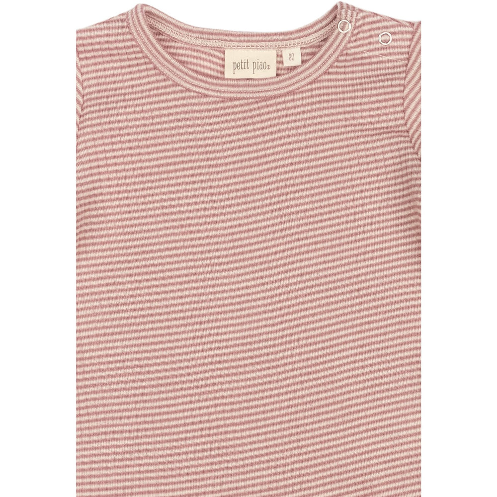 Petit Piao Nostalgic Rose/Dark Off White PPDante T-Shirt L/S Meriono Ull Striped