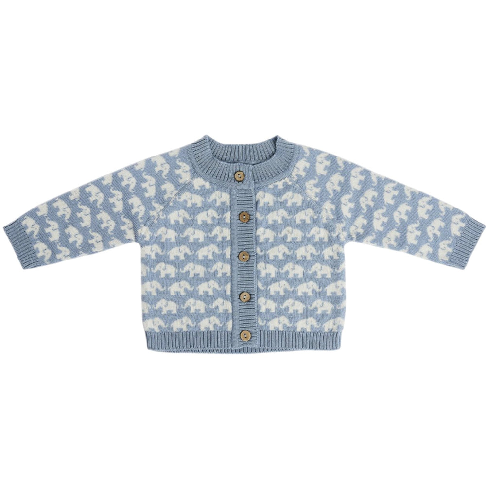Smallstuff Blue Cardigan Ao Elephants Merino Ull