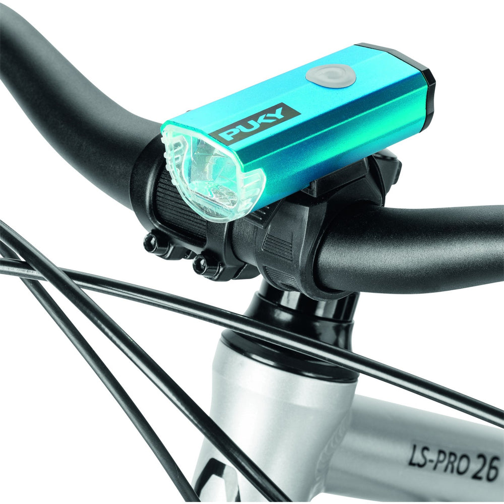 Med det här belysningssetet kan ditt barn känna sig tryggt och synligt, oavsett om det är på dagens ljusa timmar eller under kvällens mörker. Det uppmuntrar till ett mer självständigt cyklande, samtidigt som det bidrar till att utveckla barnets motoriska färdigheter och öka deras självförtroende på cykeln. Ge ditt barn en säker start på cykeläventyren med PUKY Blue Lumi! Material: Aluminium
