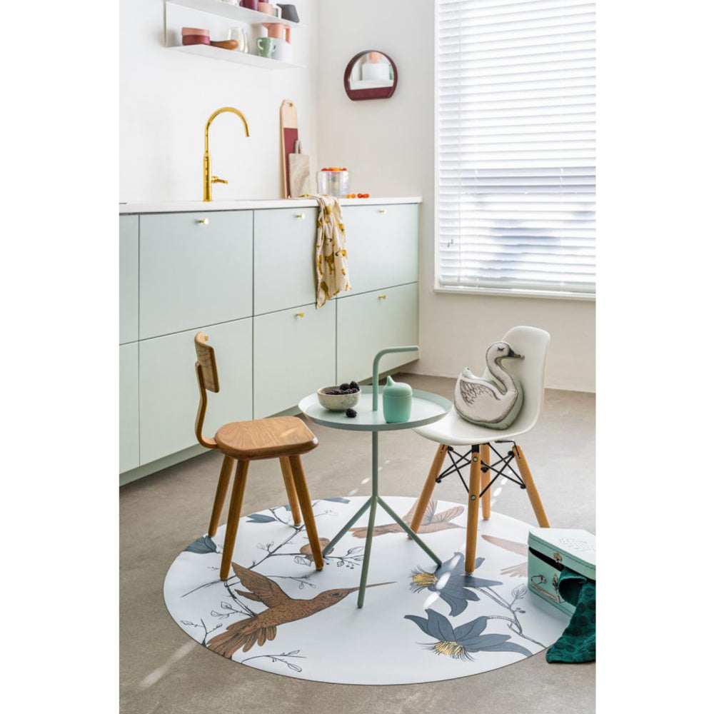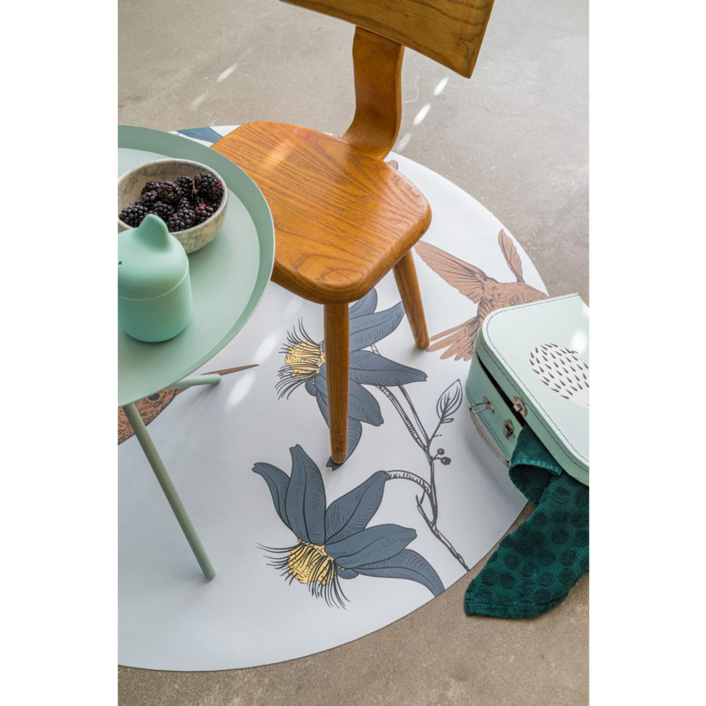 Upptäck Everleigh & Me Hummingbird Blå Stoleunderlag, designad av Frederikke som en stilfull och praktisk lösning för barnstolar. Denna matta är tillverkad av miljövänlig PVC som inte bara är lätt att rengöra, utan även uppfyller alla säkerhetsstandarder och är fri från BPA och ftalater. Med sin halkfria botten säkrar den stabilitet och skyddar golvet från repor. Dessutom är mattan lätt att rulla ihop för smidig förvaring. Idealisk för måltider och lekstunder, och med sina 105 centimeter i diameter erbjuder den gott om plats för kreativitet och skoj.