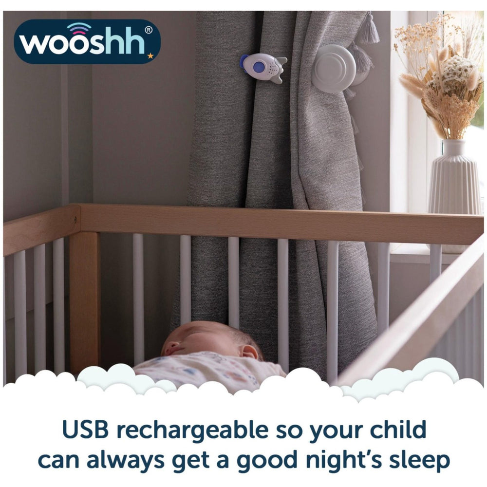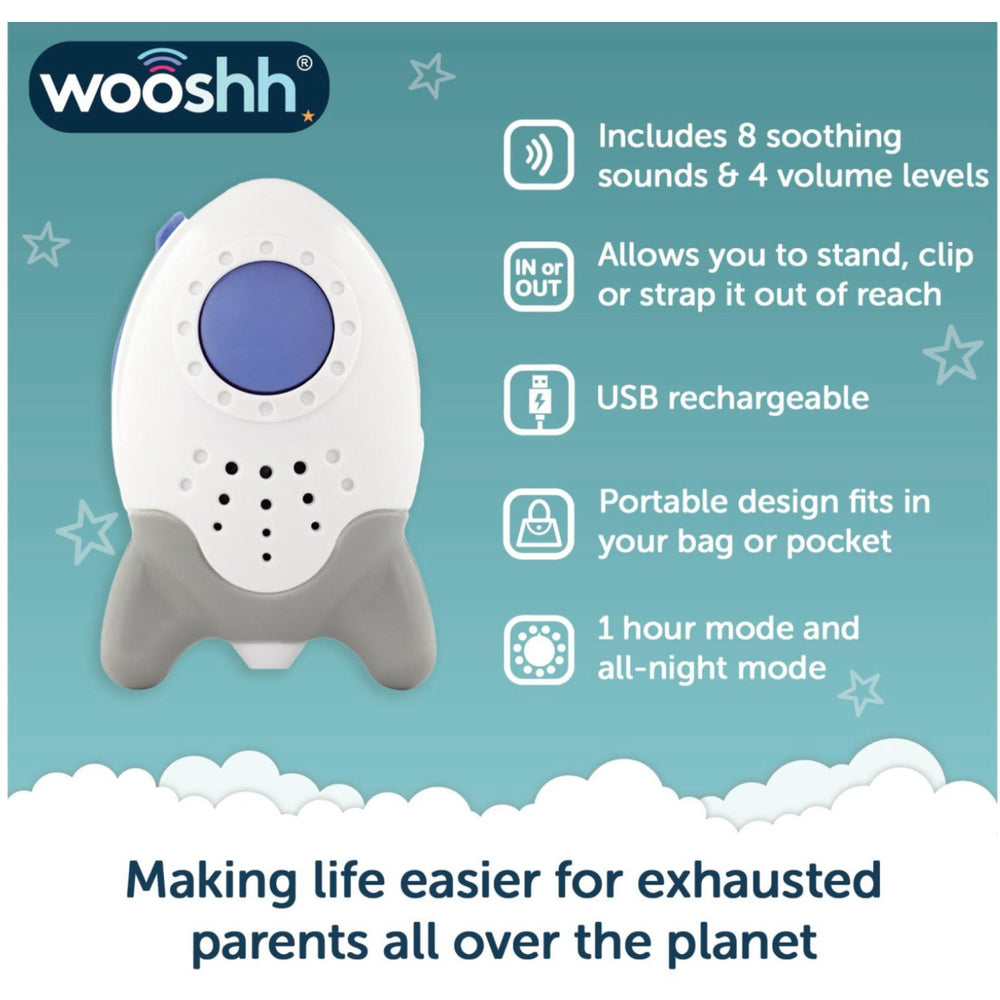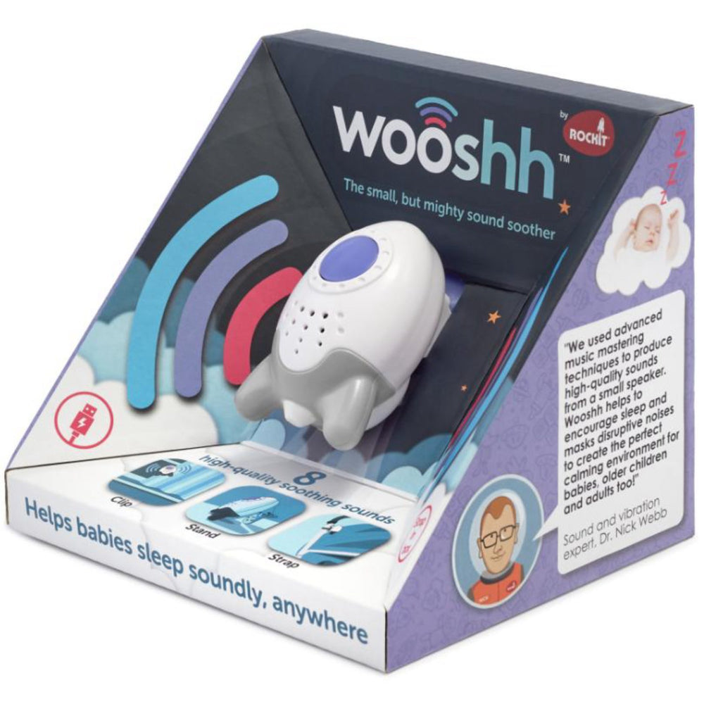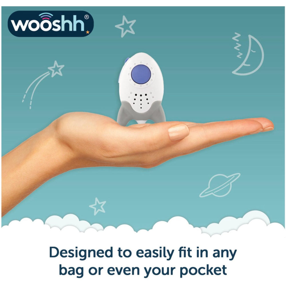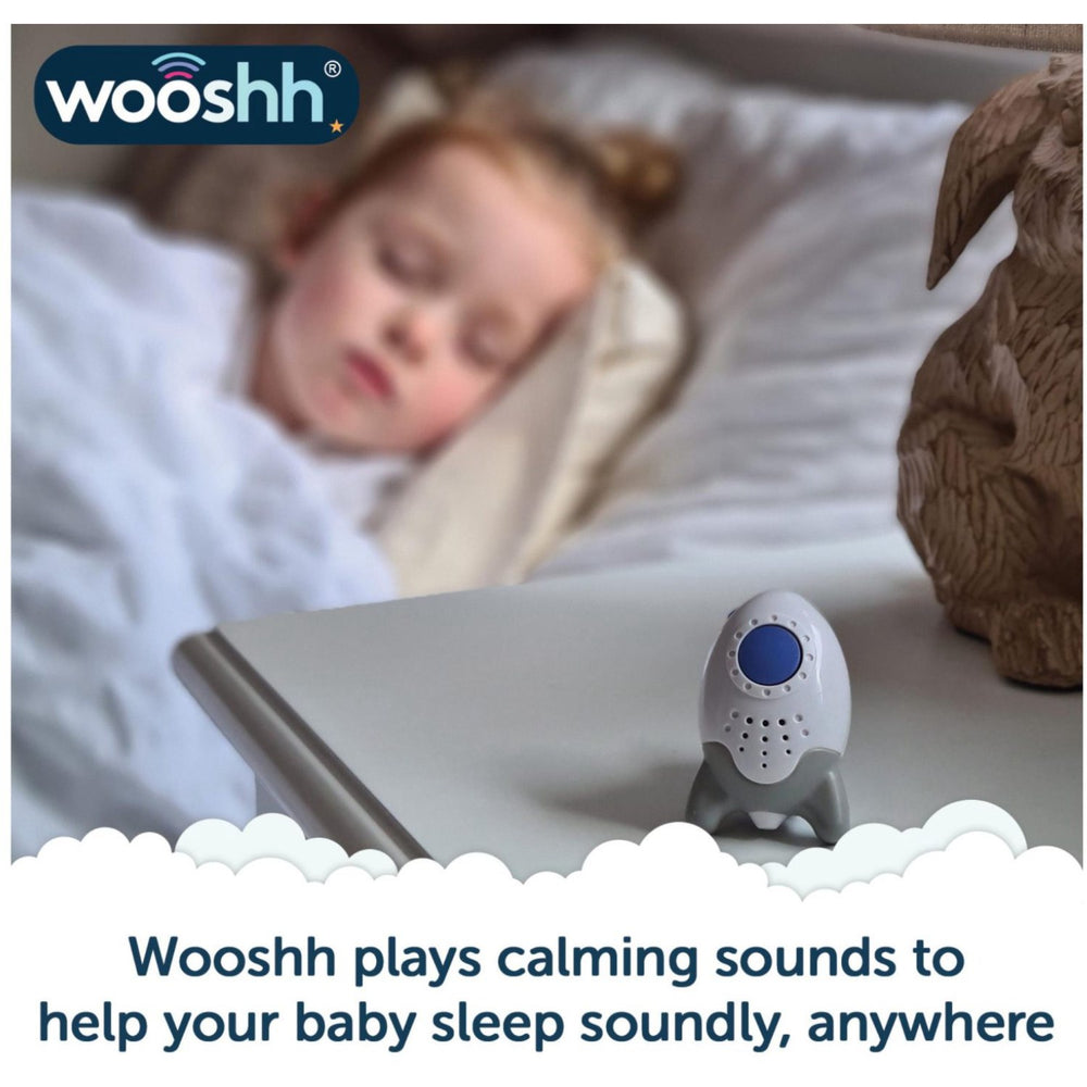 - Den smarta och kompakta Wooshh avger ett mjukt och lugnande brummande som små bebisar kommer att känna igen från när de var i sin mammas mage