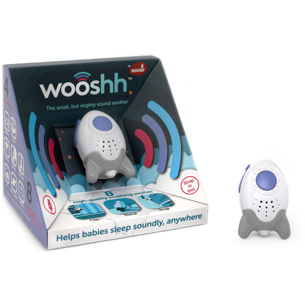 Upptäck Rockit Wooshh – er nya bästa vän för god sömn, oavsett var ni befinner er. Rockit Wooshh är en exceptionellt väldesignad vitbrusmaskin skapad för att lugna ditt barn med välkända, trygga ljud. Utformat för att efterlikna den säkra miljön i livmodern, erbjuder Wooshh åtta olika lugnande ljud: havsvågor, hjärtslag, regnljud, en katts spinnande, ljud från rymden, vaggvisemelodier, och vitt brus. Med fyra lättanpassade volymnivåer och möjligheten att välja mellan kontinuerlig drift hela natten (10 timmar) eller en en-timmesperiod, erbjuder denna smarta enhet stora möjligheter för anpassning efter barnets och familjens behov.