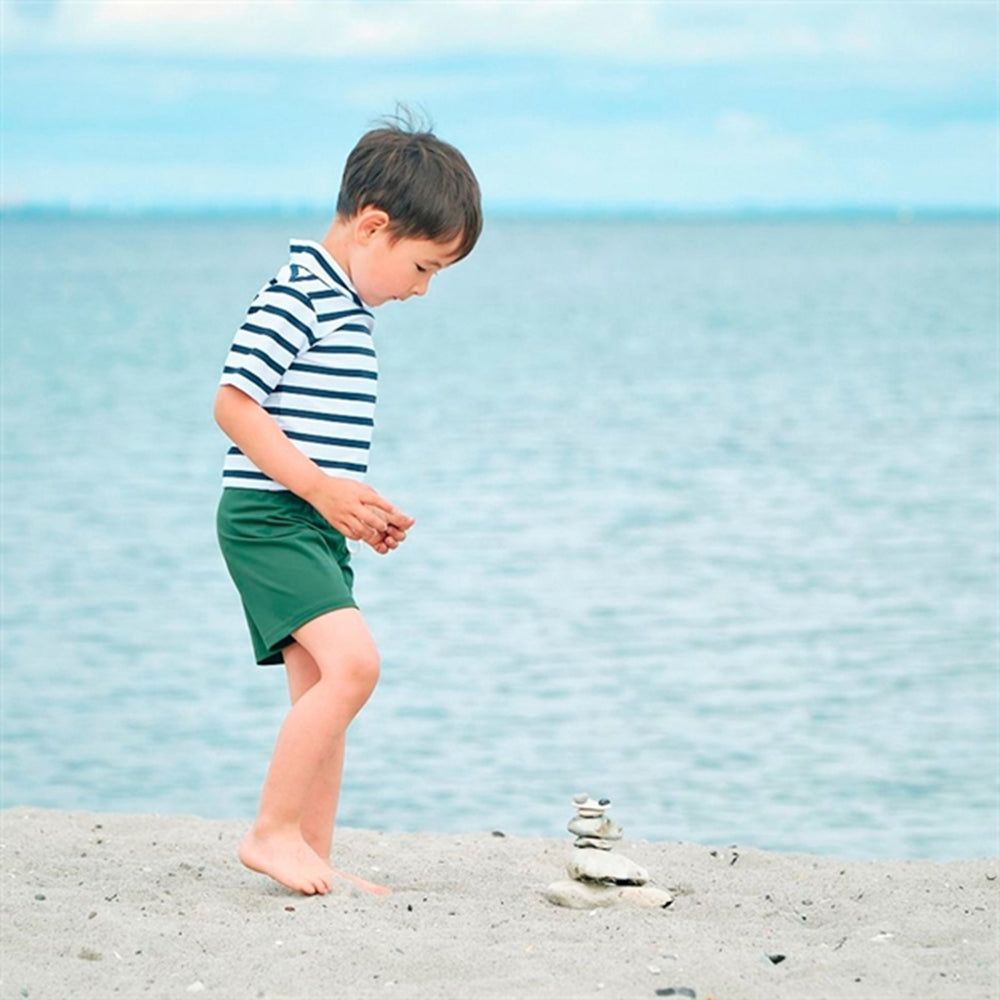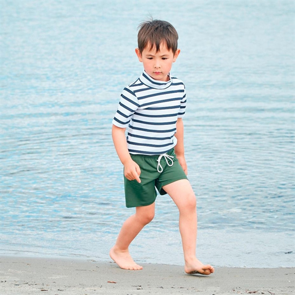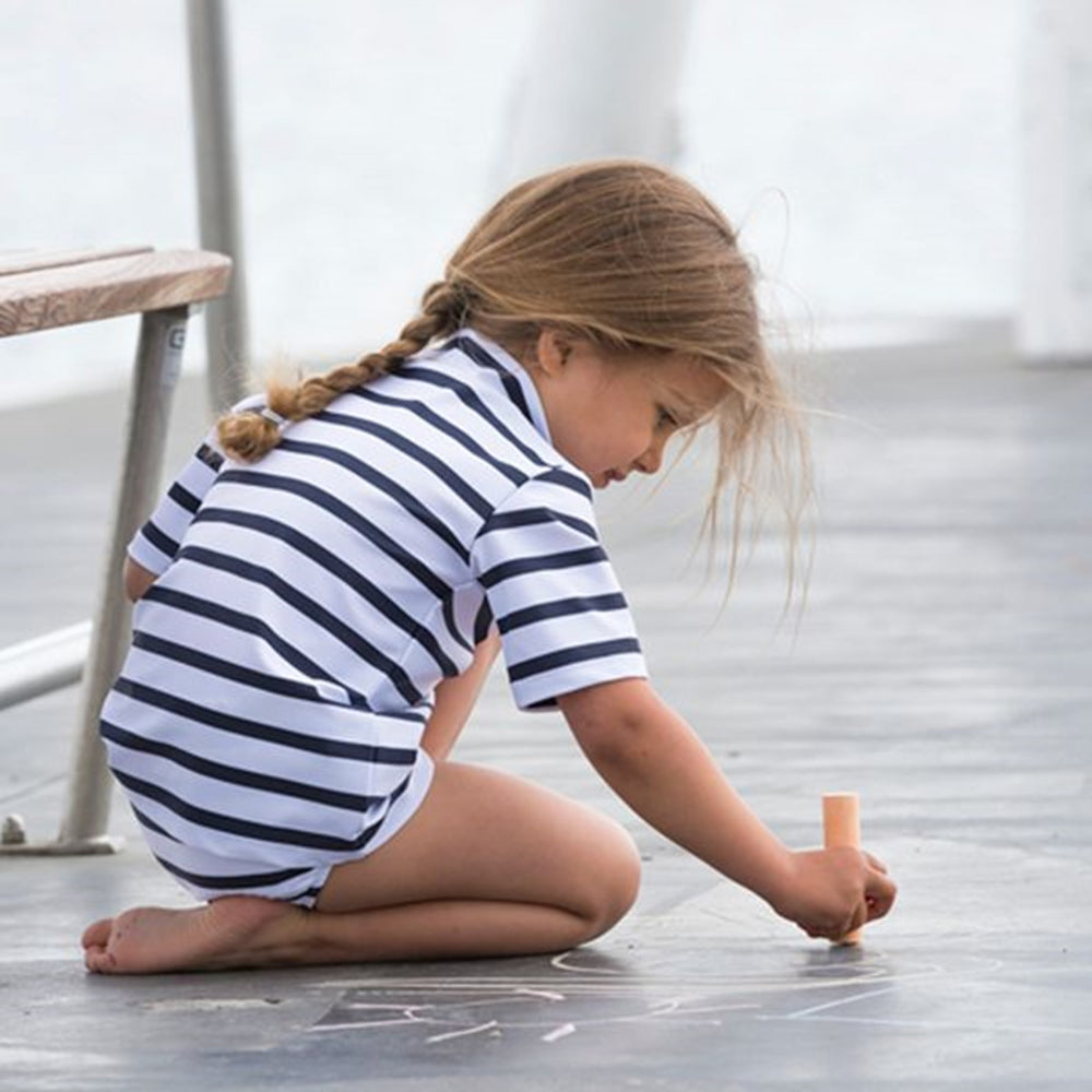 Upplev den optimala kombinationen av stil och komfort med Petit Crabe's turtleneck tee i vitt och blått. Denna charmiga badtröja är tillverkad av mjukt material som är skonsamt mot barnets hud och är designad med ett iögonfallande blått och vitt mönster. Den höga kragen skyddar effektivt mot solen medan passformen garanterar utmärkt rörelsefrihet för lek och äventyr vid vattnet. Lätt att sköta och maskintvättbar, tröjan är lika praktisk som den är snygg. Idealisk för små upptäckare som älskar vattenlekar!