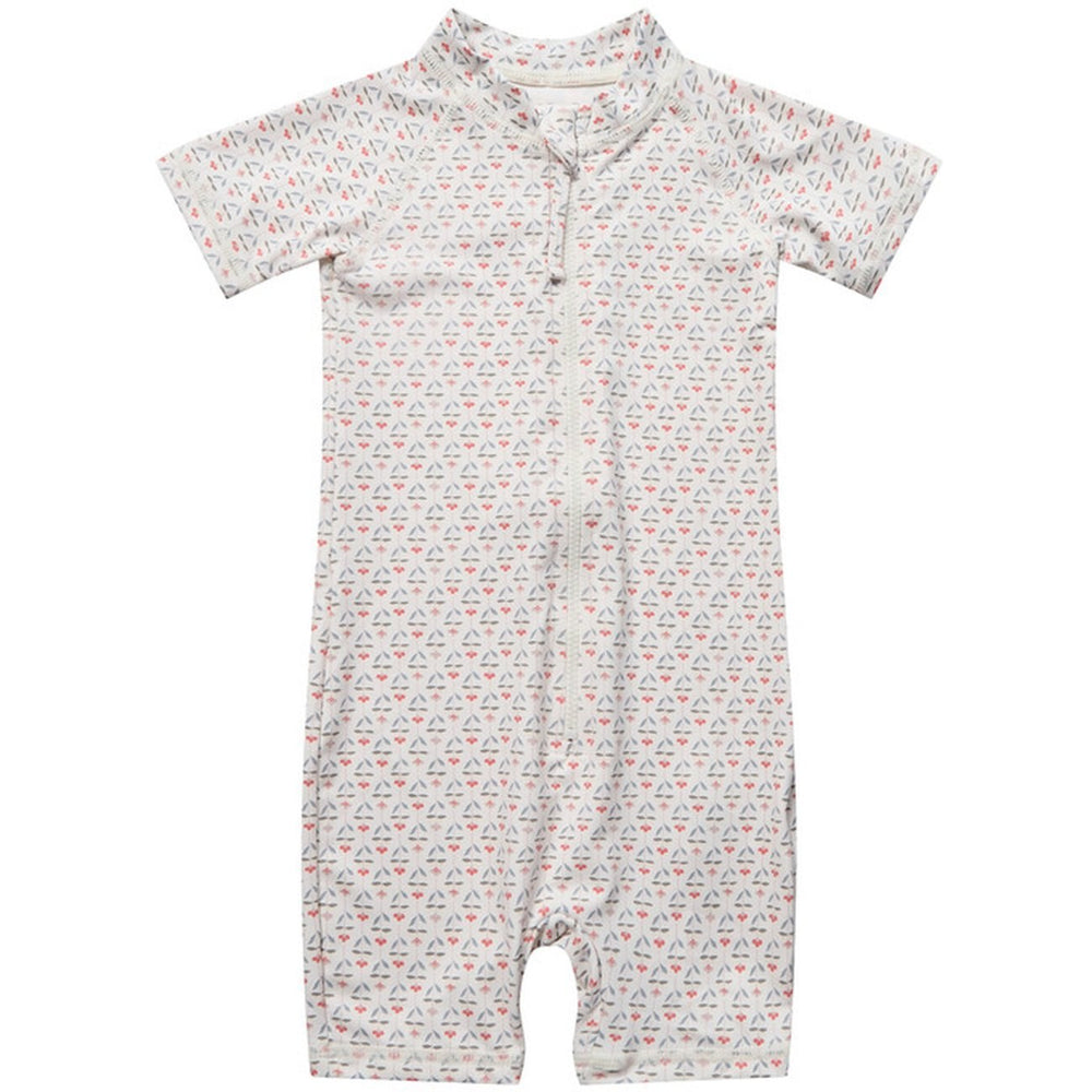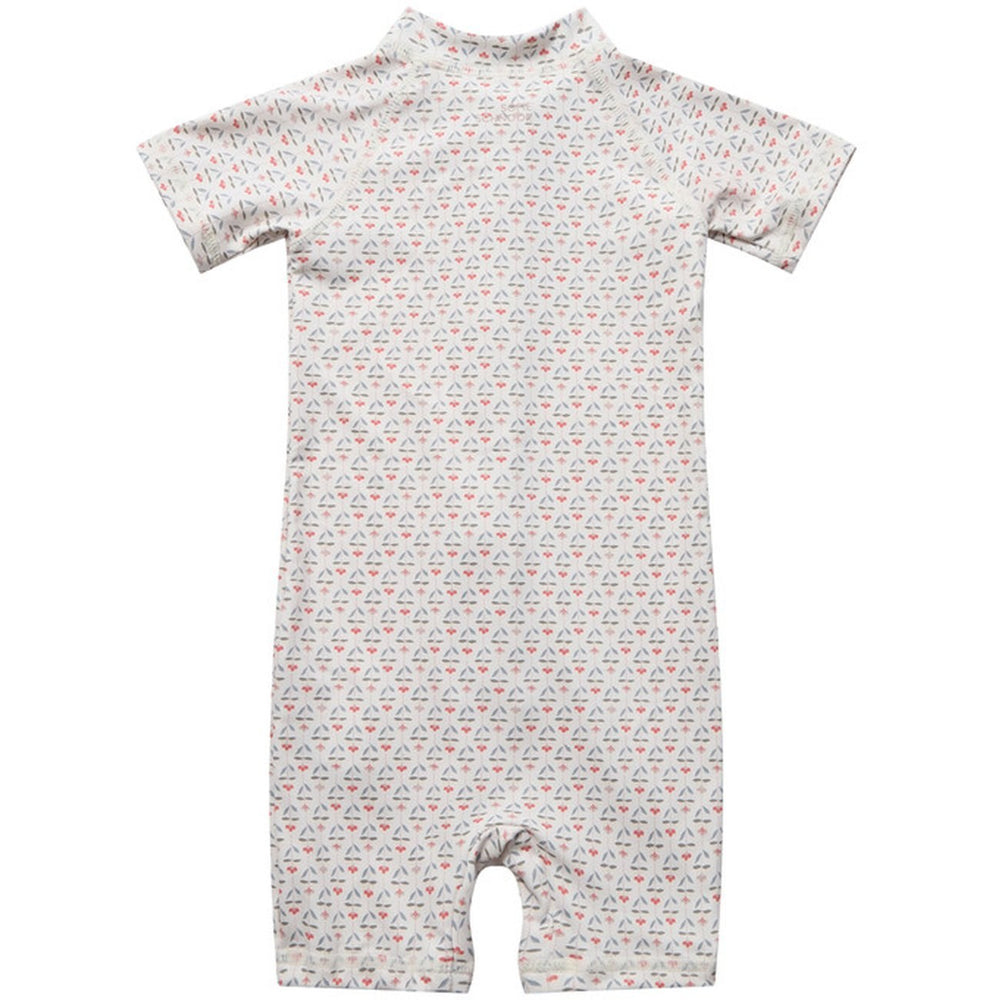 Sommarens roliga badkläder är här! Sofie Schnoor Antique White Swimsuit är det perfekta valet för små vattenälskare. Den här söta baddräkten har korta ärmar och ben, ett supercoolt sommarblomstryck och öppnas enkelt med en dragkedja framtill. Tillverkad av 82% återvunnen polyester med omtanke om klimat och miljö. Med UPF 50-skydd är ditt barn skyddat från solens strålar. Så ta med dig den här dräkten på ditt nästa dopp och kom ihåg att följa tvätt- och användningsinstruktionerna för att hålla den snygg länge!