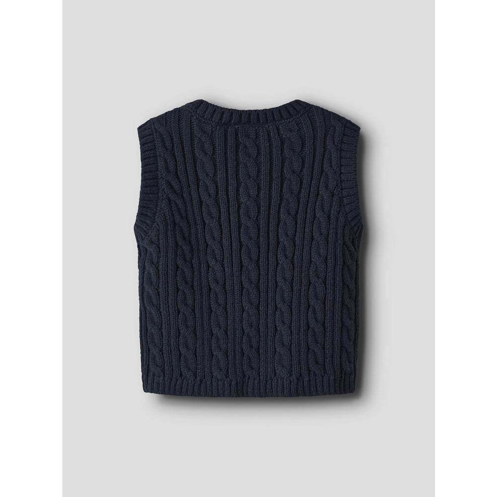 Upptäck vår charmiga stickade väst från Name It, i klassisk marinblå som gör varje barns outfit snygg och bekväm. Den här västen är perfekt för kyligare dagar, tillverkad i kabelstickad design som inte bara ser bra ut utan också känns mjuk mot huden. Med sin V-halsa och ärmlösa stil, är denna väst både praktisk och trendig.